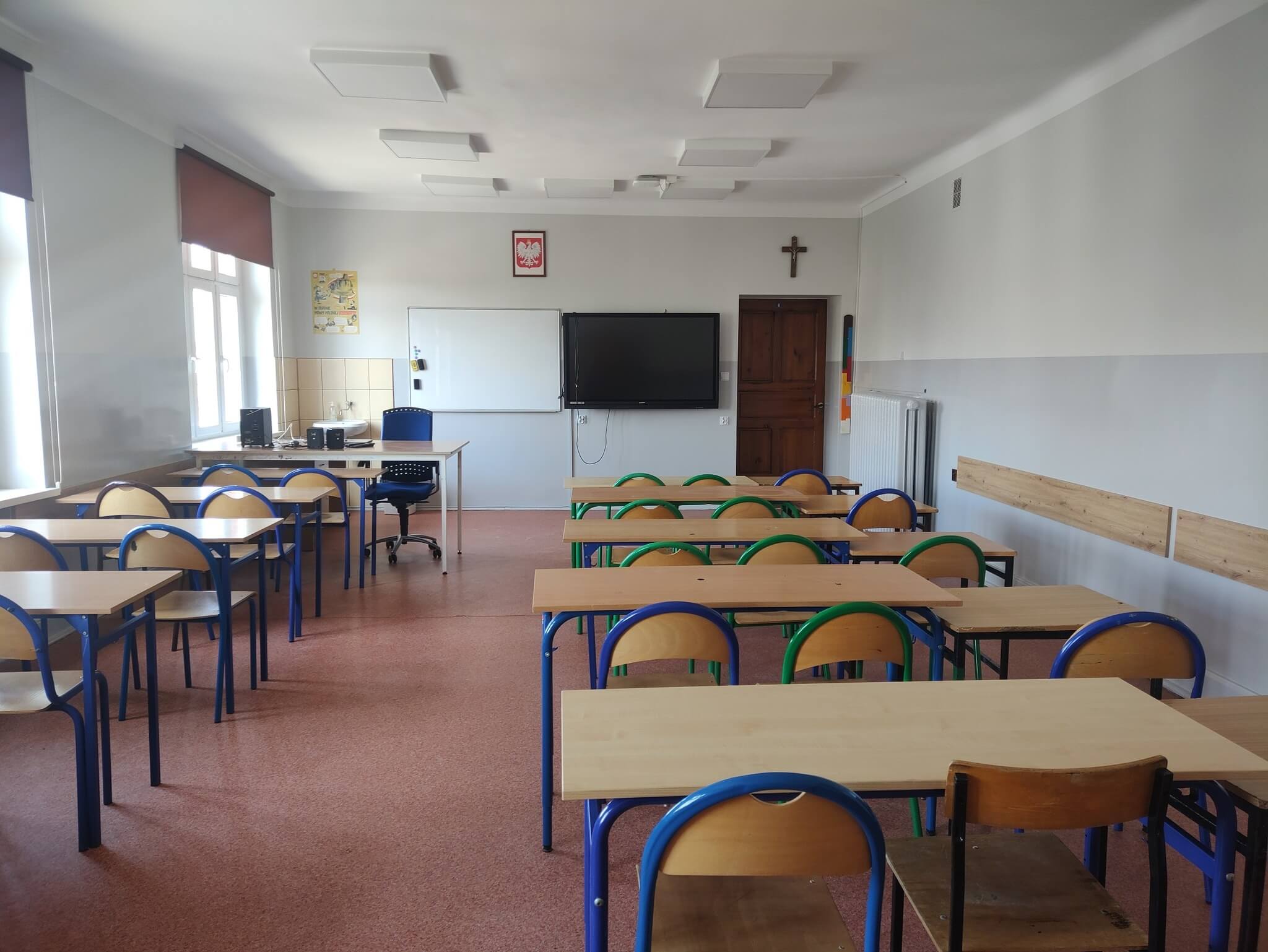 👉 wymiany nowoczesnego oświetlenia ledowego w salach: 3, 4, 6, 9 i 10,