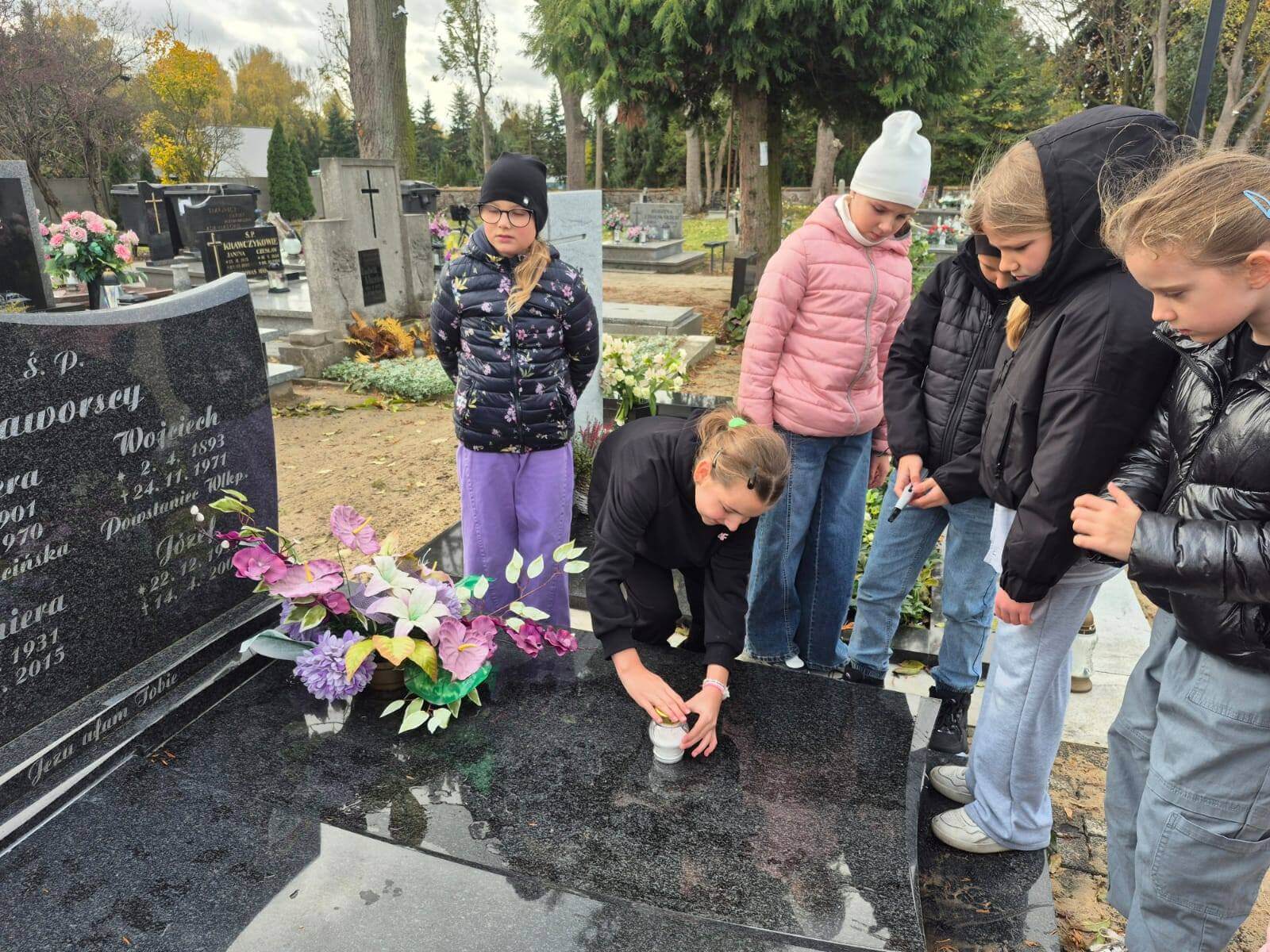 W jednym z dni poprzedzających Wszystkich Świętych oraz Święto Zmarłych, uczniowie klasy III c, poszli na pobliski cmentarz, aby upamiętnić groby osób strajkujących w „Jedynce” w czasie Strajku Dzieci Koźmińskich w 1906-1907 roku.