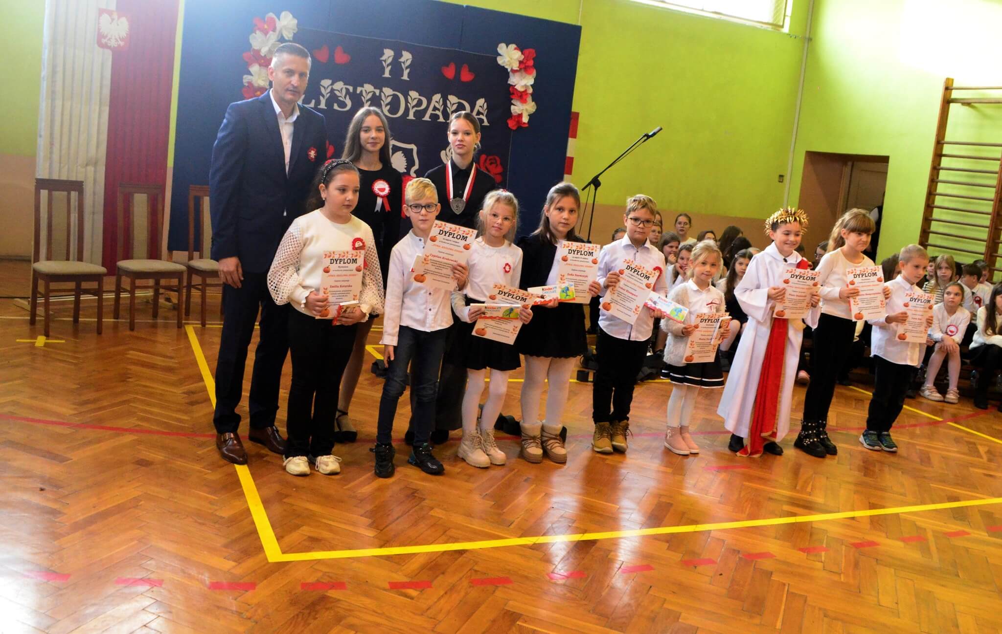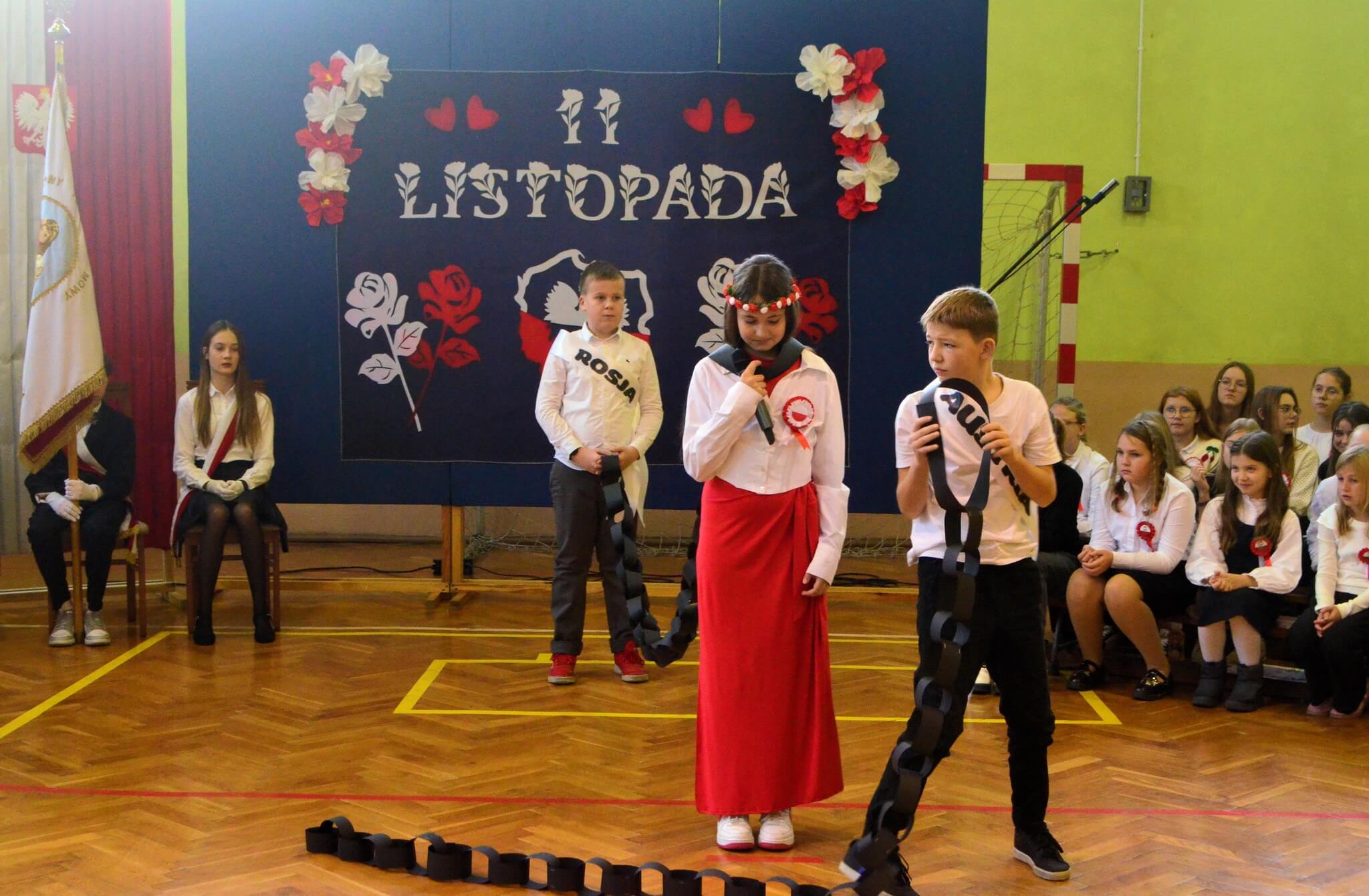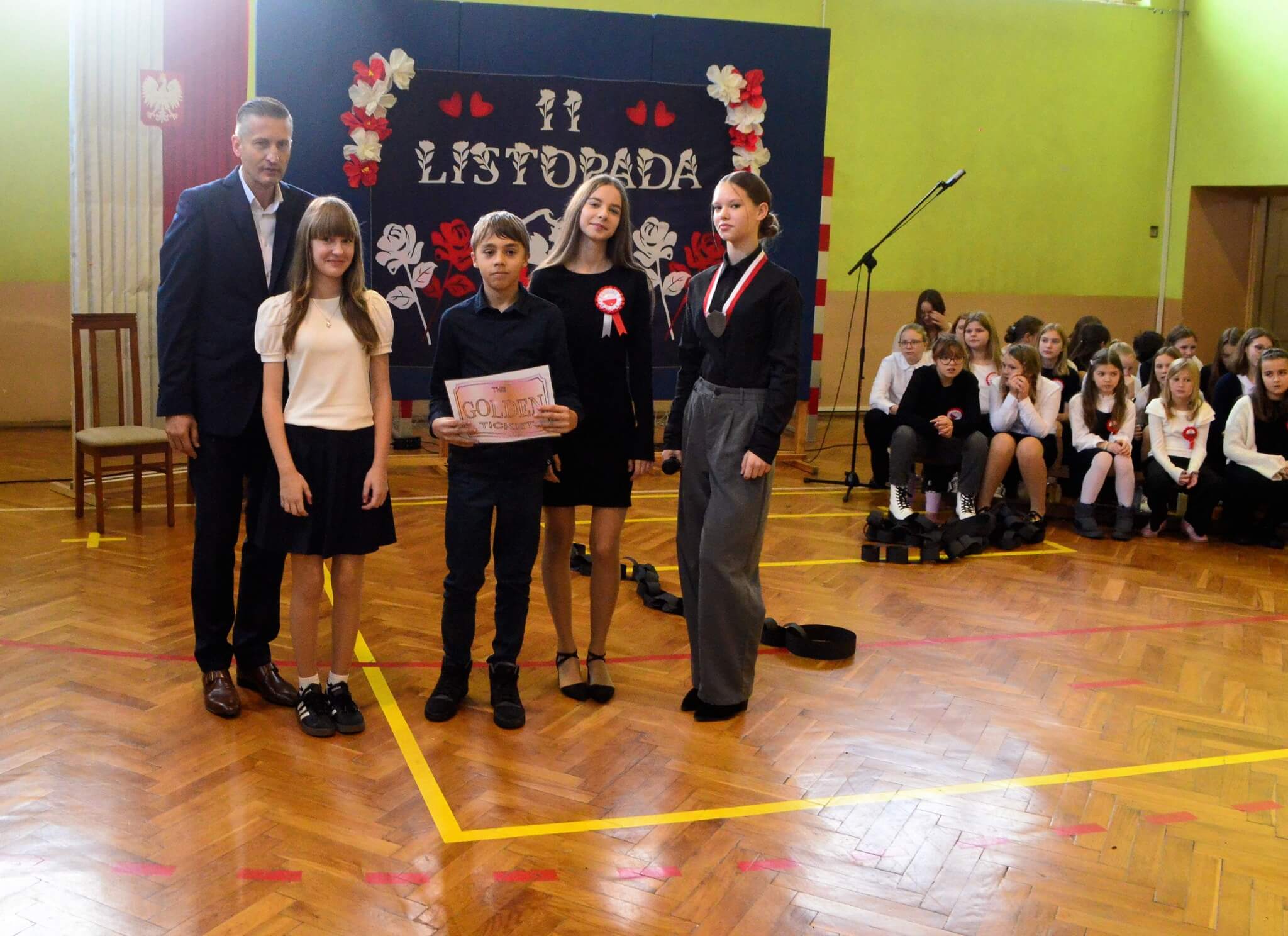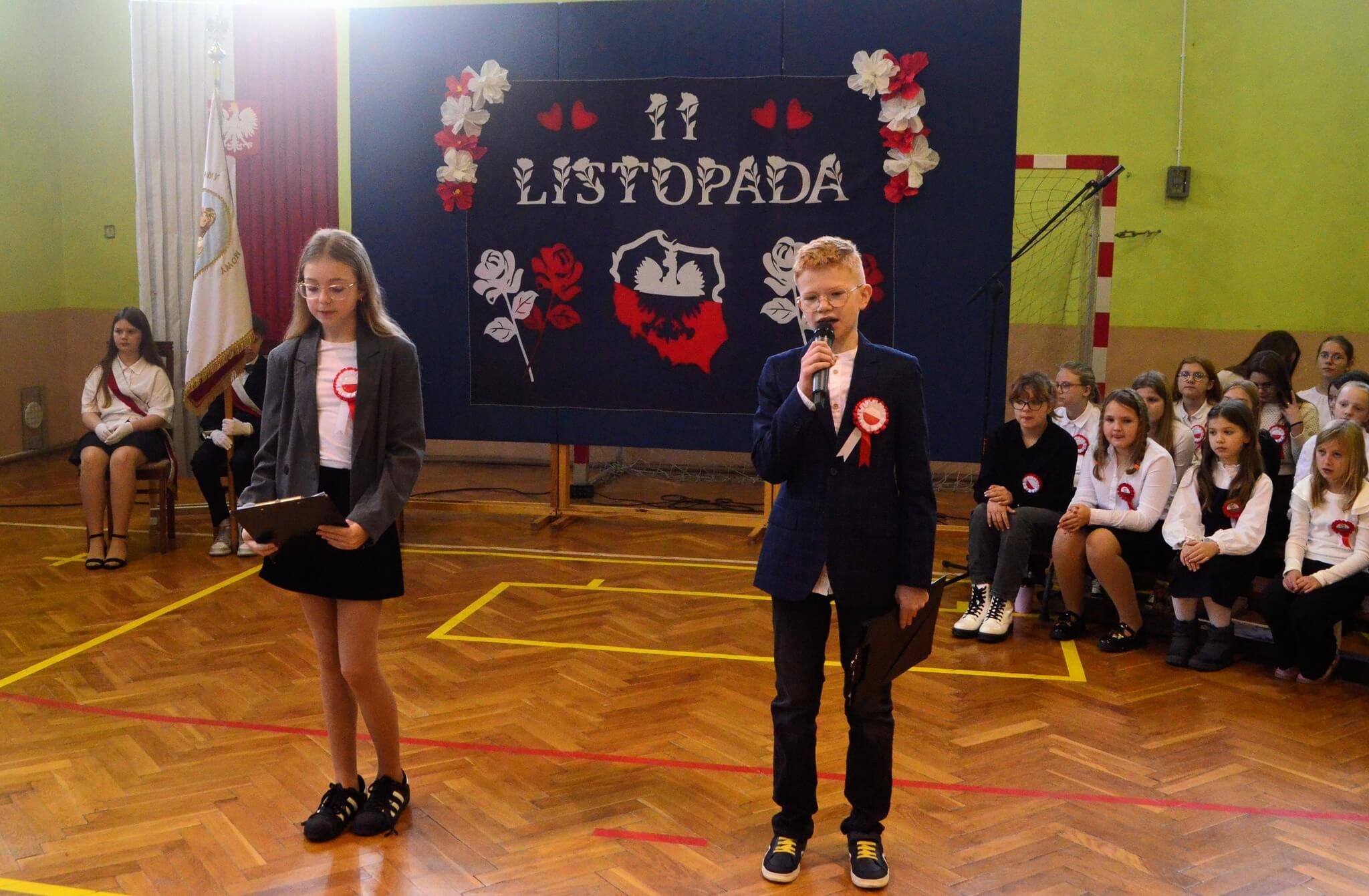 Piątoklasiści przypomnieli nam najważniejsze momenty z historii Polski i opowiedzieli o drodze naszego kraju do wolności. Były piękne teksty, wzruszające pieśni patriotyczne i chwile pełne refleksji, dzięki którym wszyscy mogliśmy poczuć dumę z bycia Polakami!