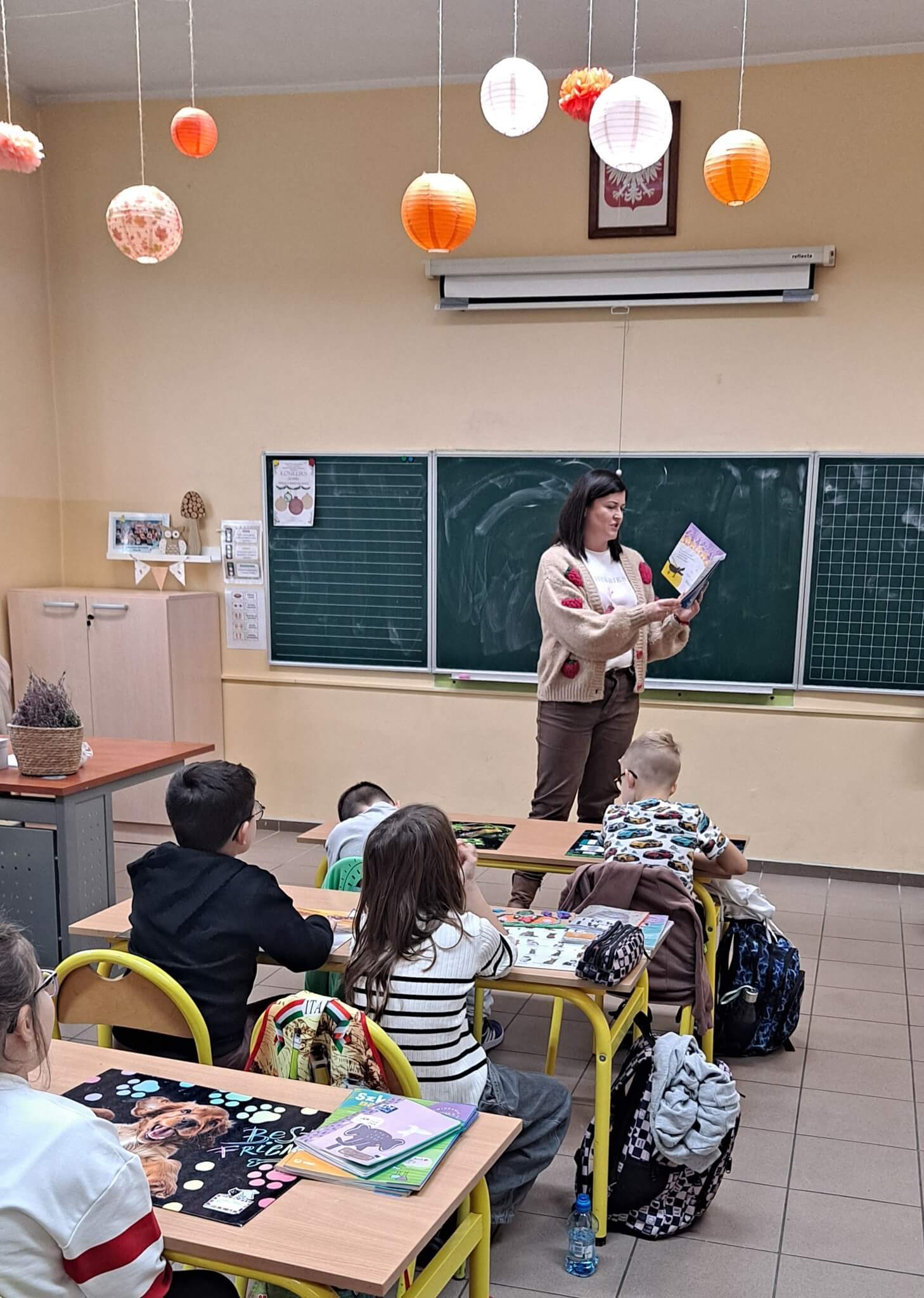 Na początku Pani Monika z biblioteki szkolnej przeczytała dzieciom legendę o rogalach świętomarcińskich, dzięki czemu uczniowie poznali tradycję ich wypieku oraz dowiedzieli się, skąd wzięła się ta piękna zwyczajowa historia.