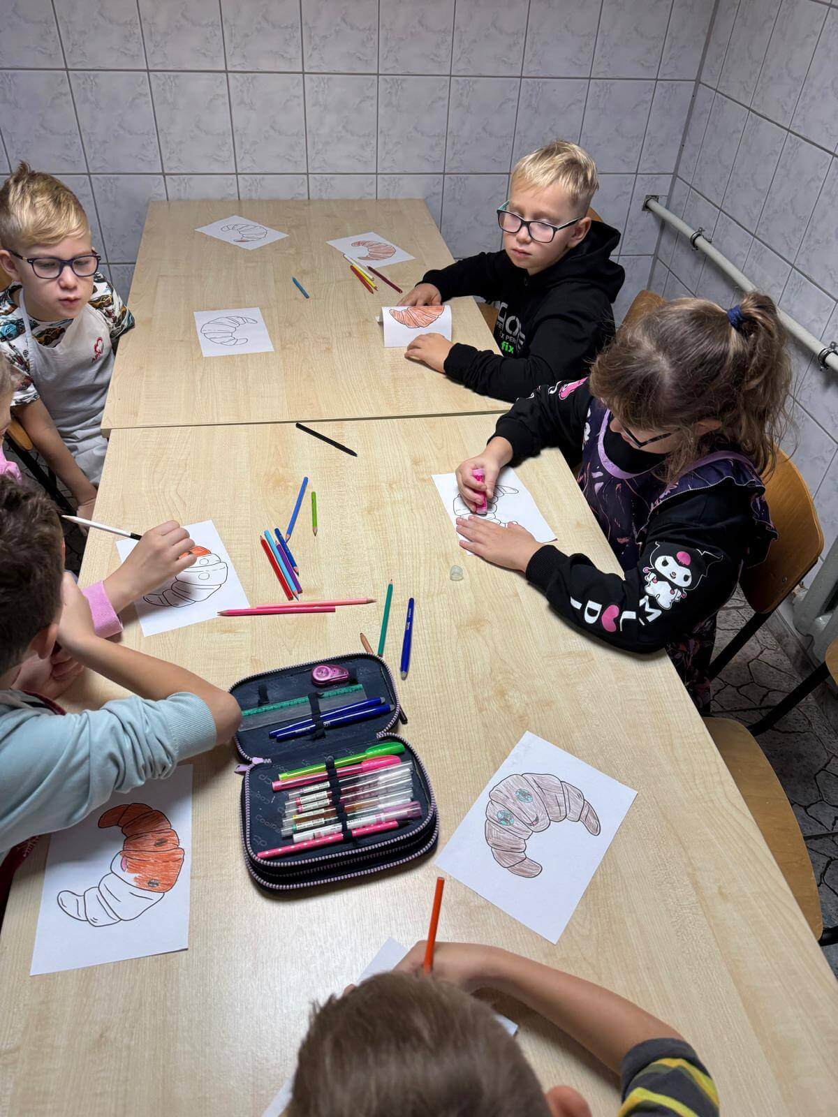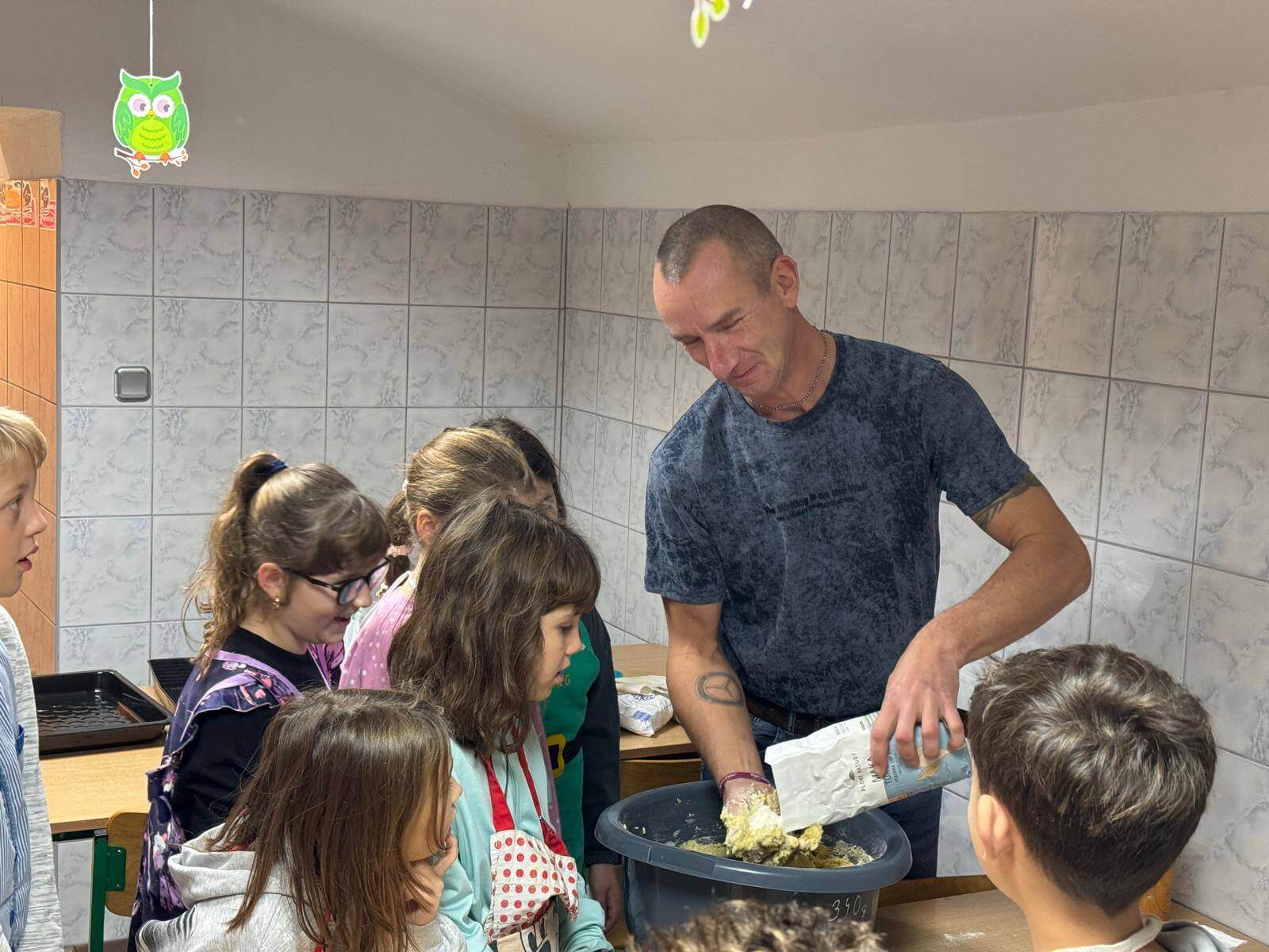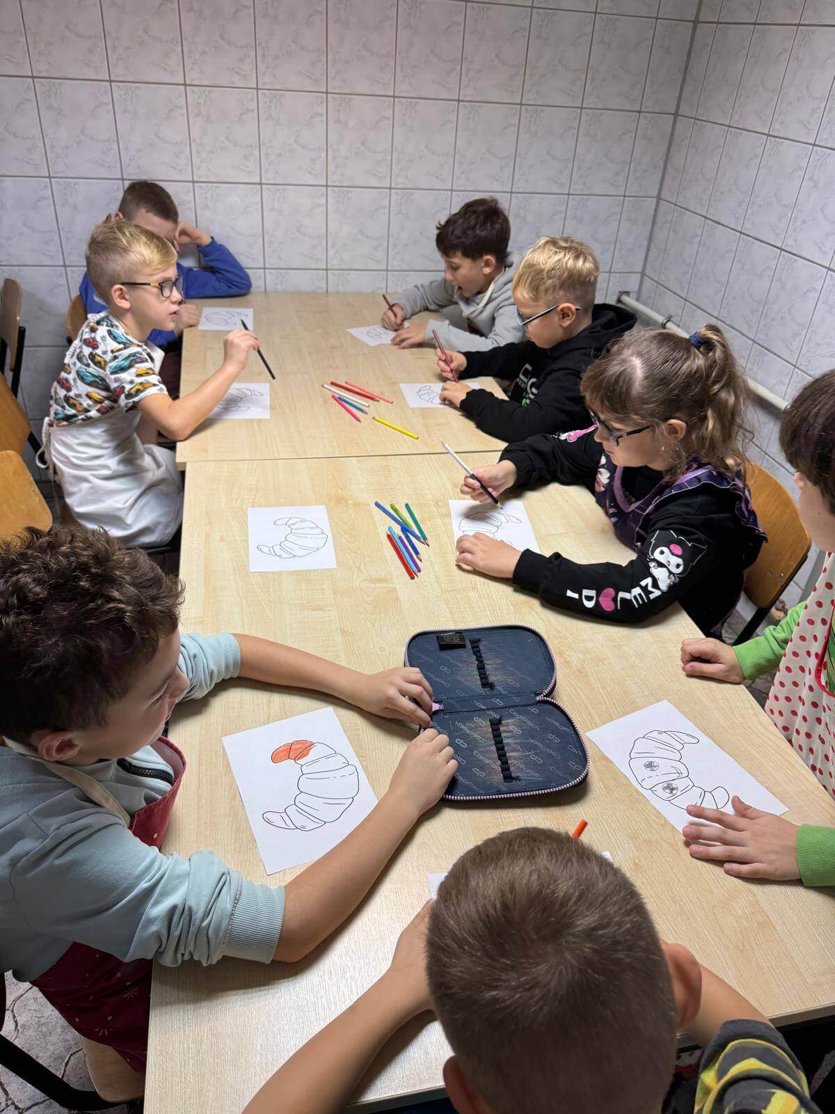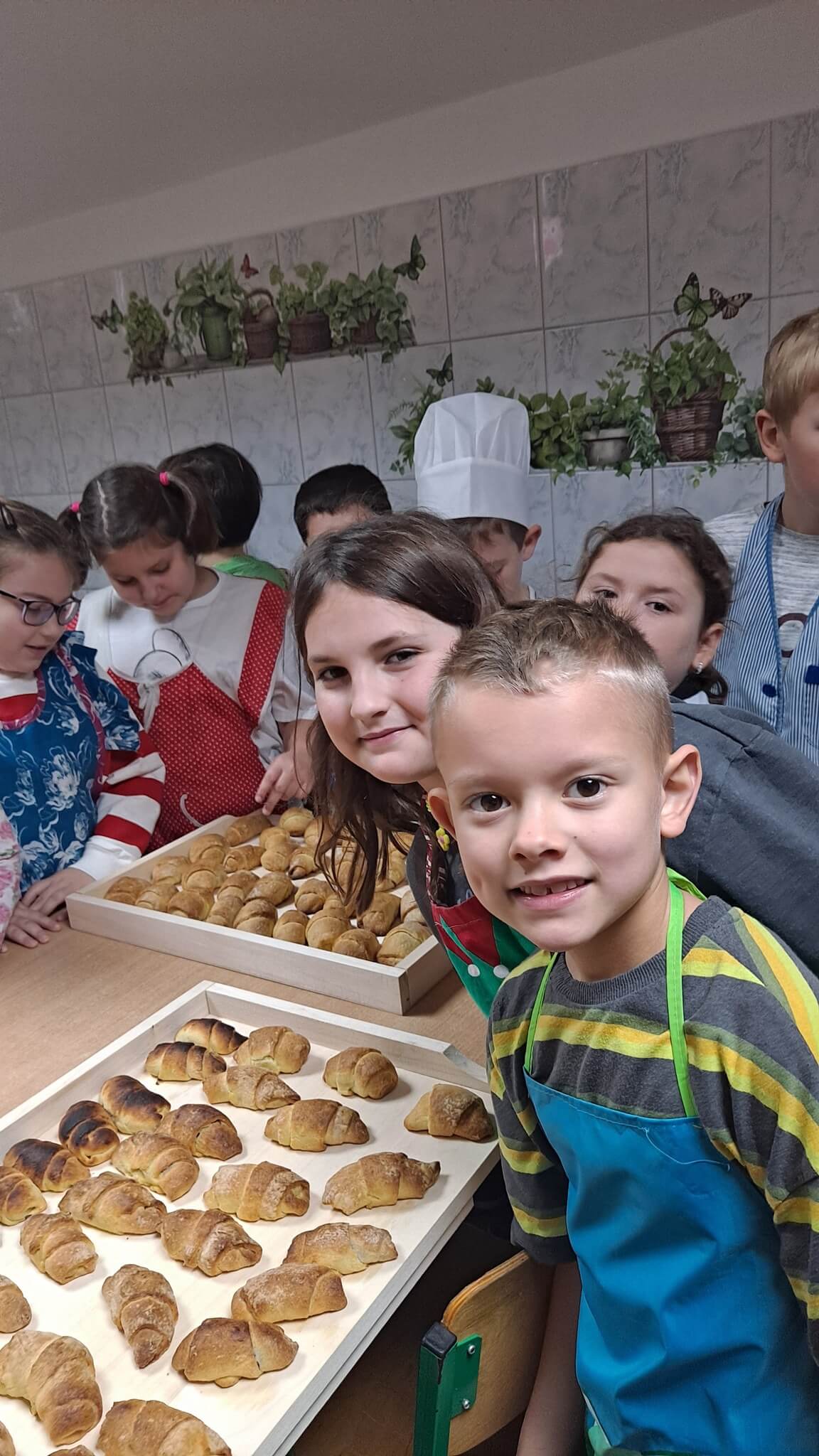 14 listopada 2025 r. w szkolnej stołówce uczniowie klasy II b wzięli udział w wyjątkowych warsztatach pieczenia rogalików. Było radośnie, gwarno i bardzo pysznie!