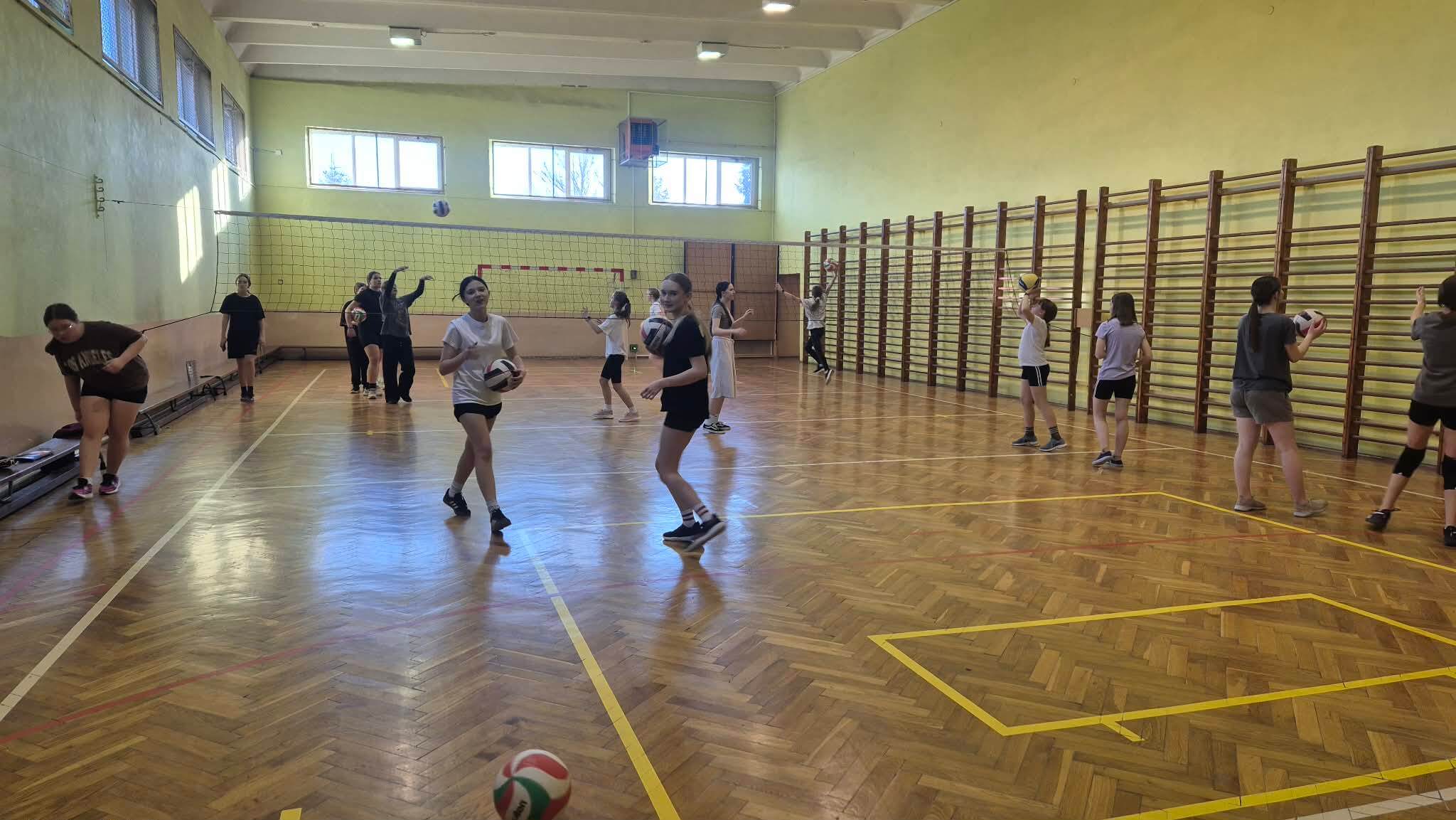 Dziewczęta z klas 6-8 już drugi rok z rzędu regularnie spotykają się na dodatkowych zajęciach z piłki siatkowej. Na treningach nie brakuje zaangażowania, współpracy i sportowych emocji, a każda kolejna lekcja przynosi nowe umiejętności i dużo radości z gry.