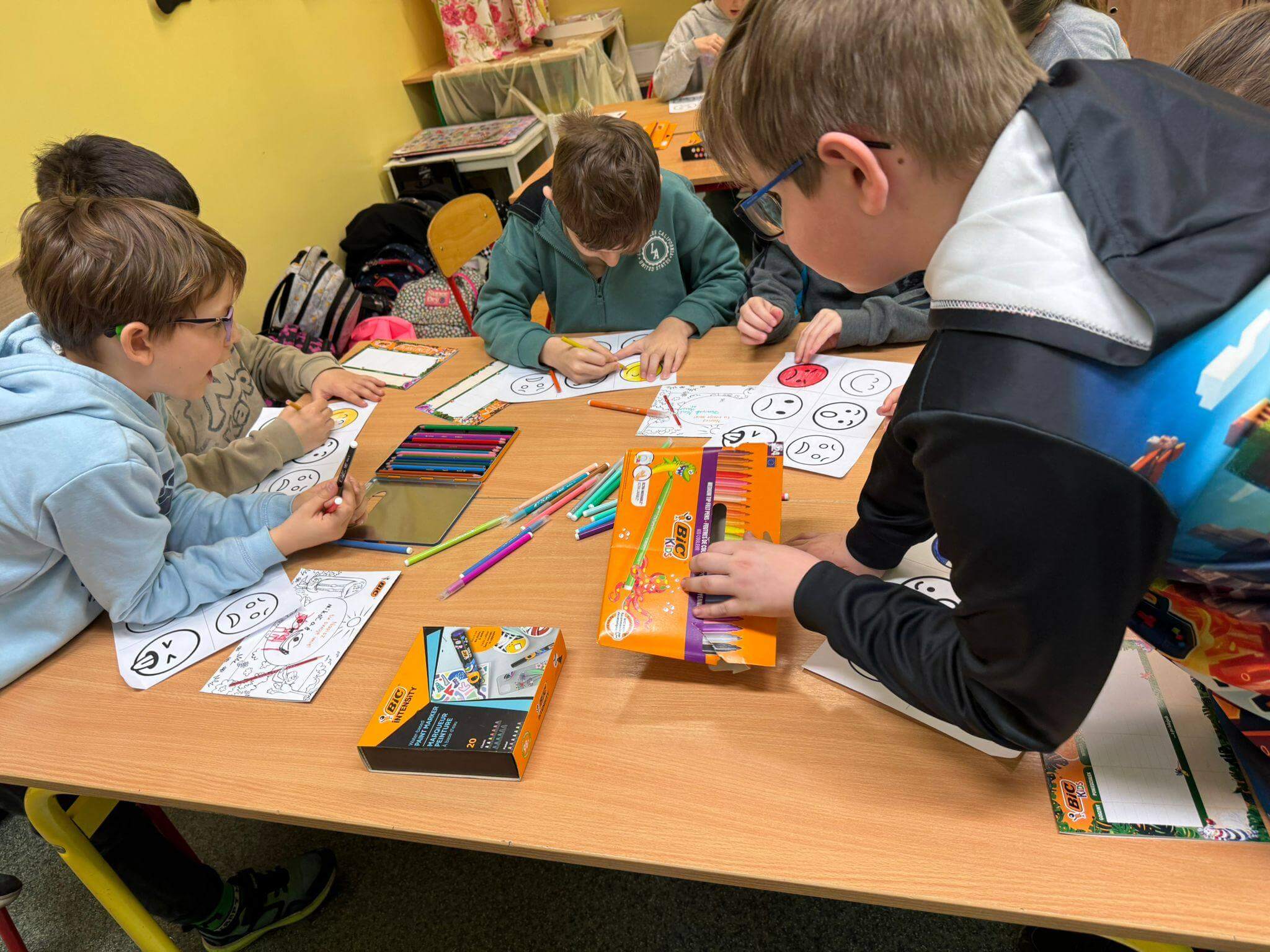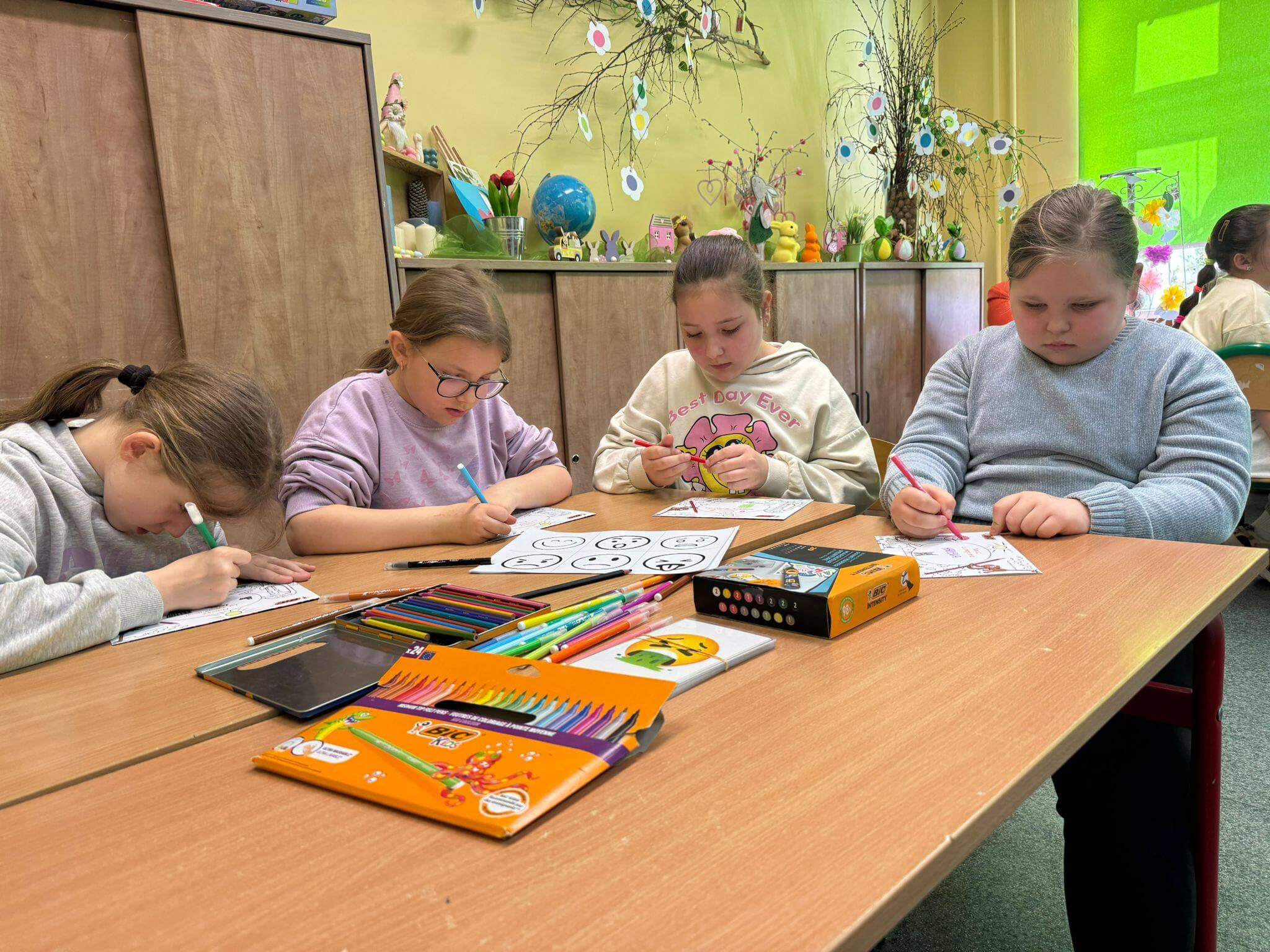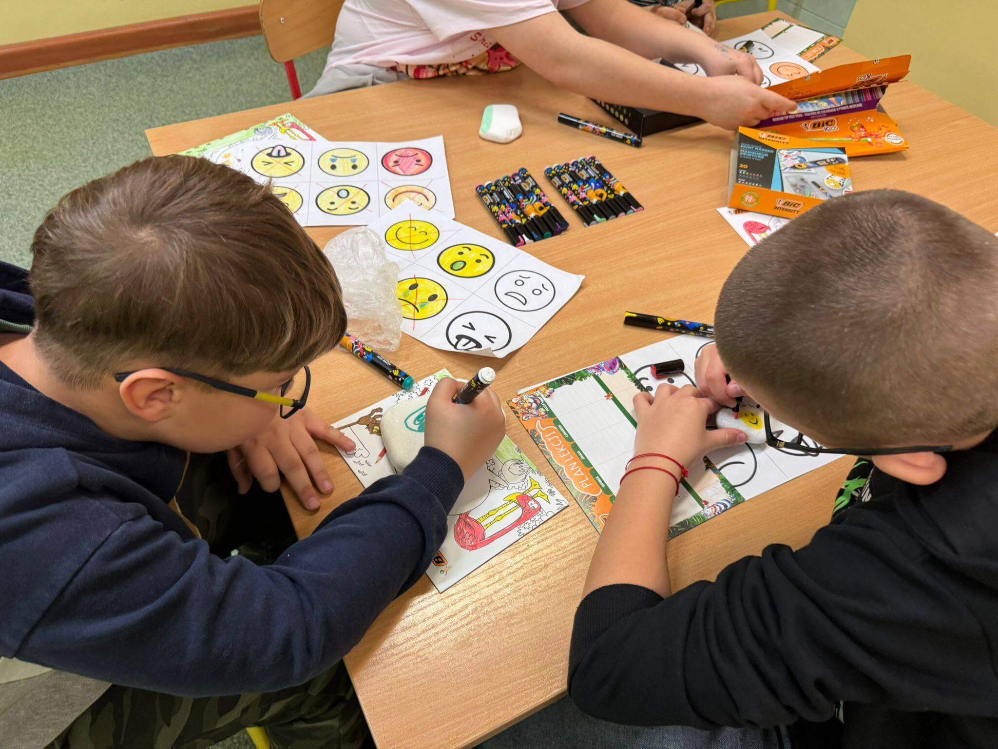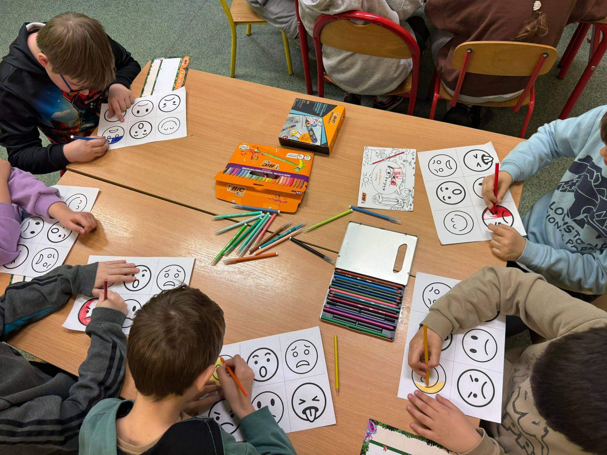 Każdy uczestnik otrzymał kreatywny zestaw piśmienniczy od marki BIC, który posłużył do twórczego wyrażenia emocji poprzez rysunek, kolor i formę. Powstałe prace są nie tylko piękne wizualnie, ale przede wszystkim stanowią osobiste historie i refleksje uczniów. Efekty działań oraz zaangażowanie uczestników można podziwiać na poniższych zdjęciach 🙂