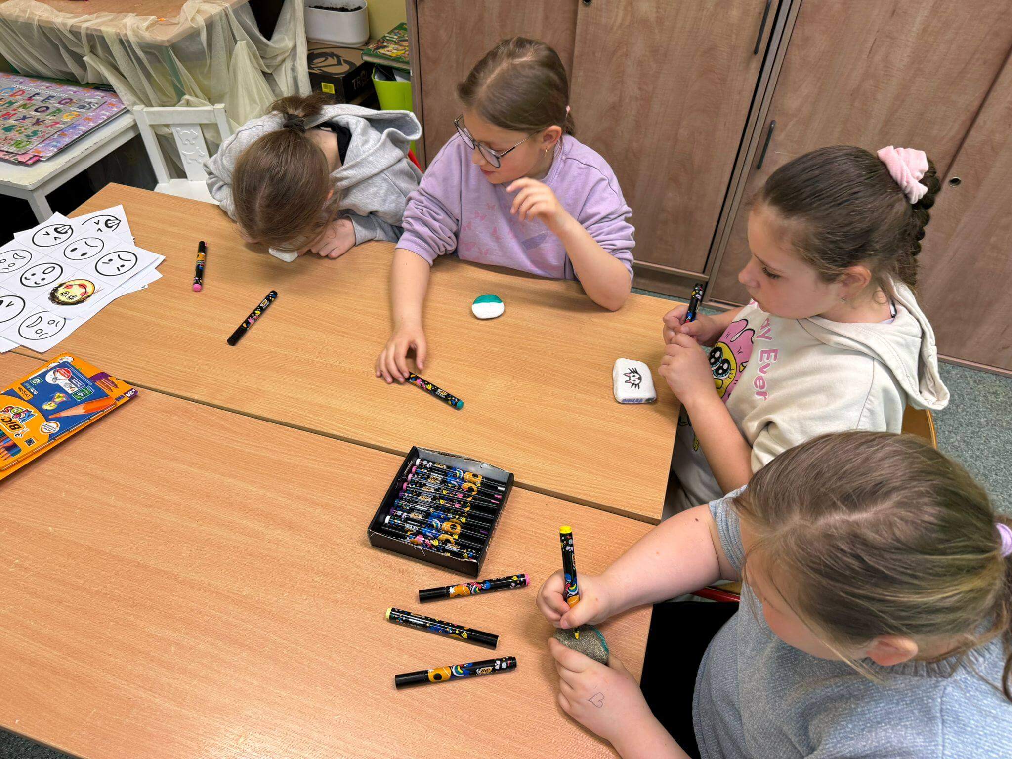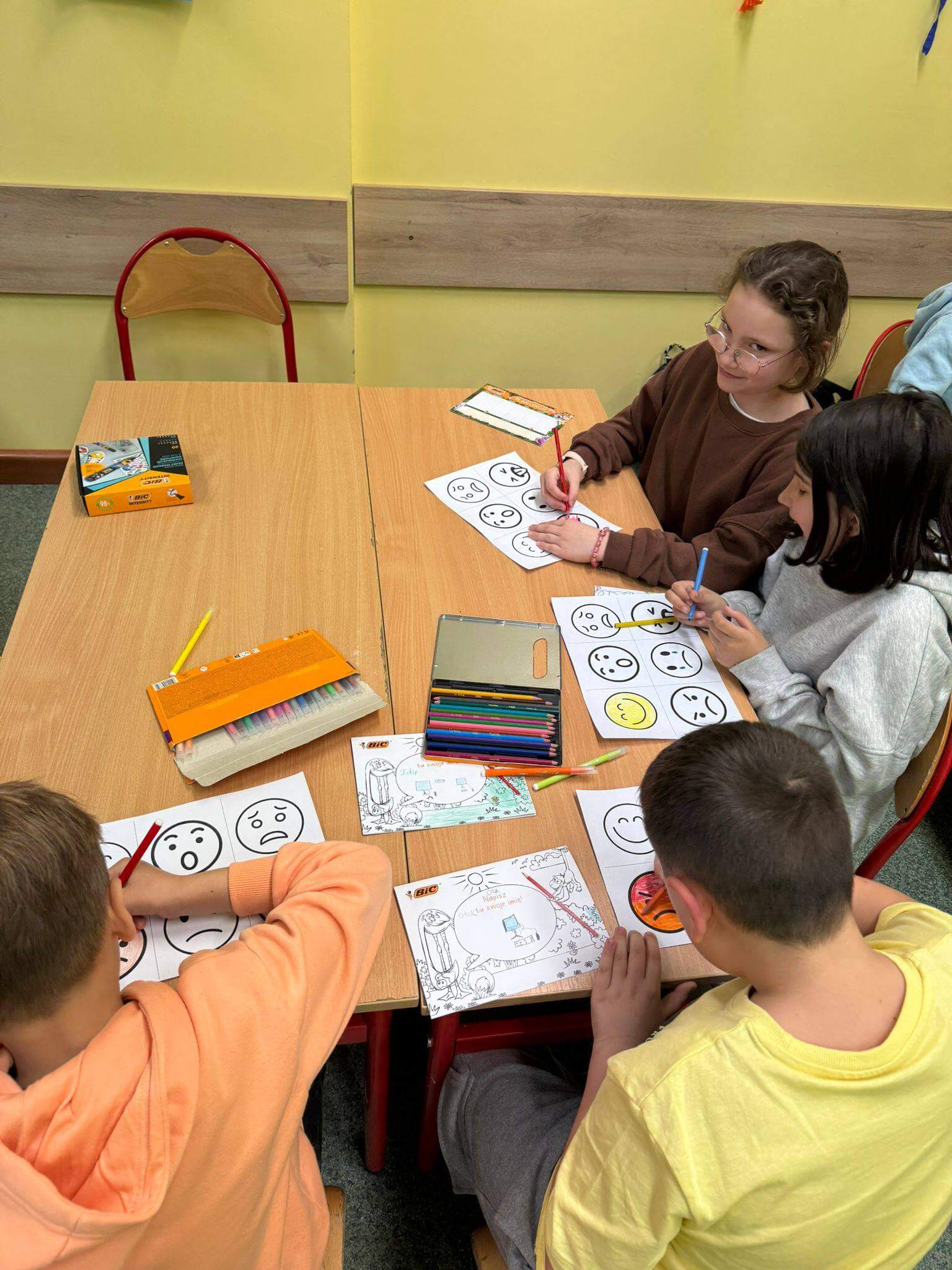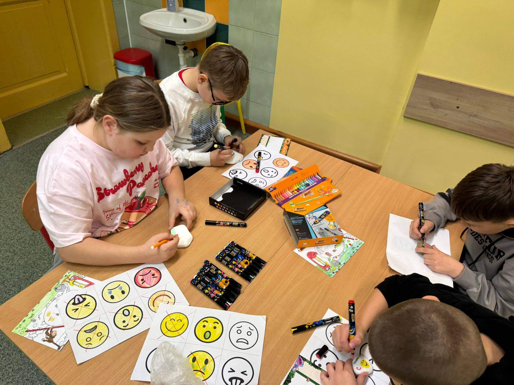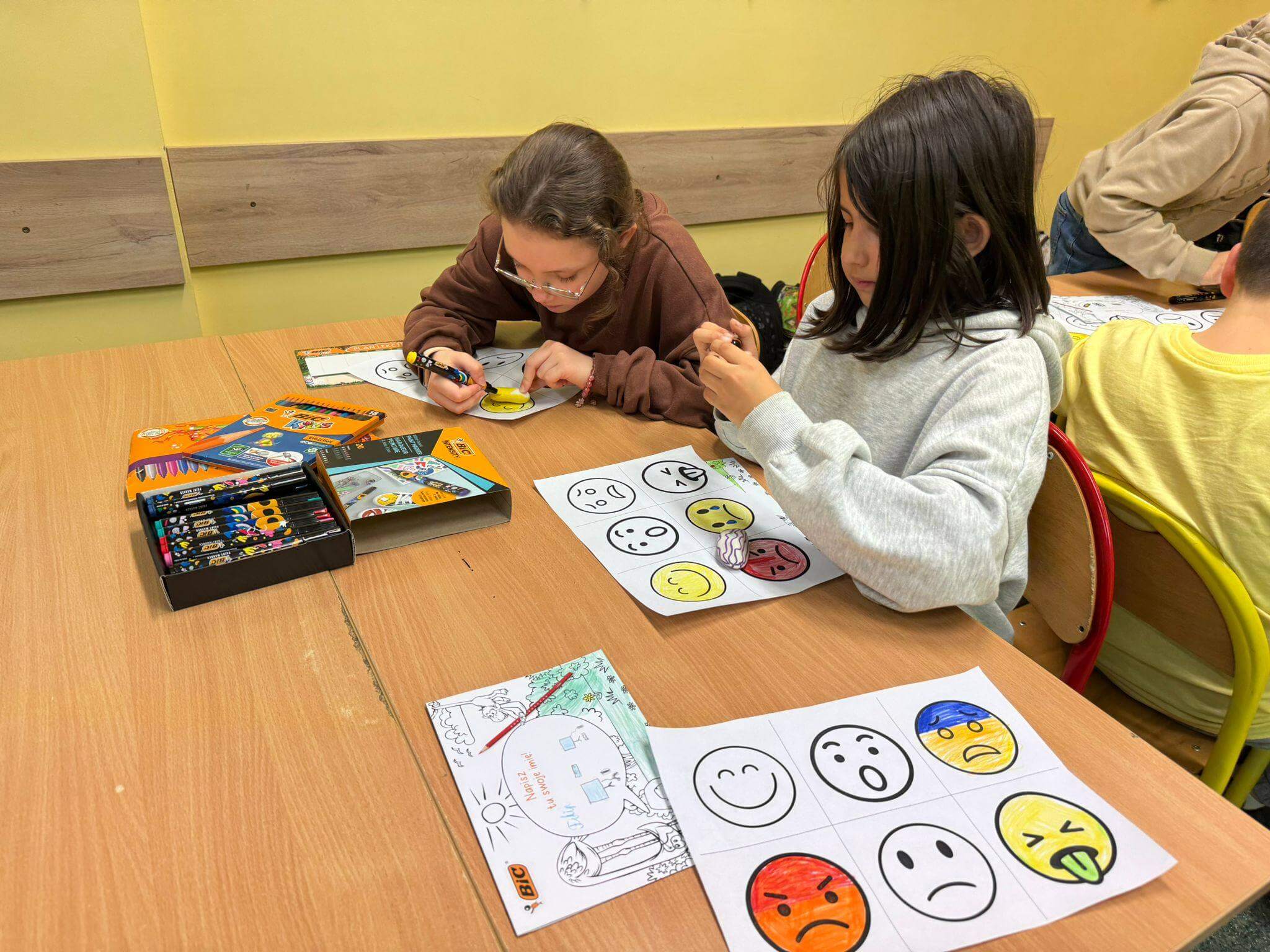 Każdy uczestnik otrzymał kreatywny zestaw piśmienniczy od marki BIC, który posłużył do twórczego wyrażenia emocji poprzez rysunek, kolor i formę. Powstałe prace są nie tylko piękne wizualnie, ale przede wszystkim stanowią osobiste historie i refleksje uczniów. Efekty działań oraz zaangażowanie uczestników można podziwiać na poniższych zdjęciach 🙂