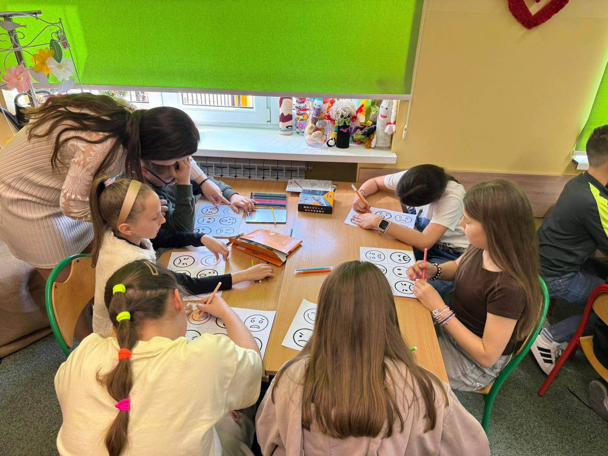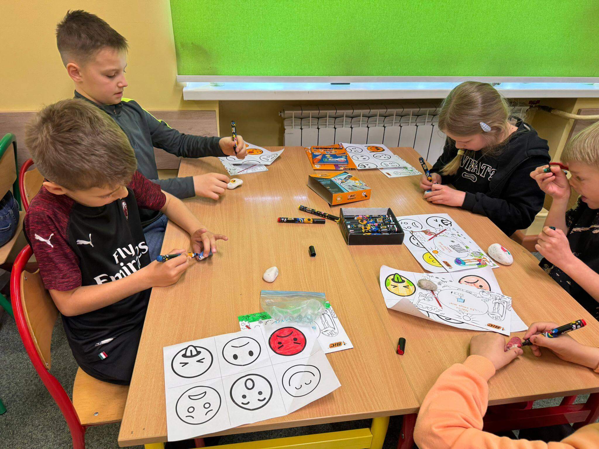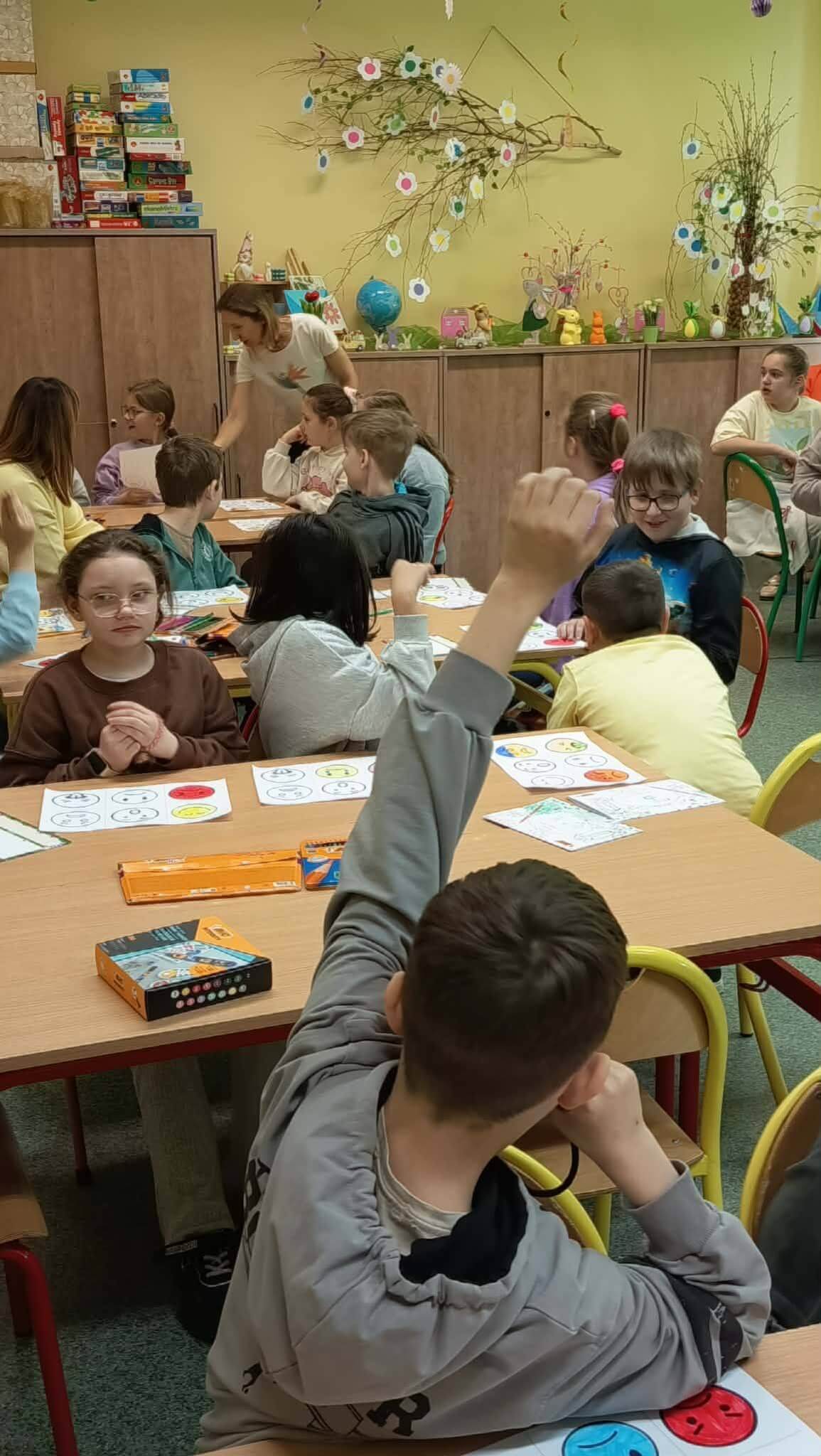 Głównym celem zajęć było rozwijanie kompetencji emocjonalno-społecznych uczniów, w tym umiejętności rozpoznawania, nazywania i wyrażania emocji, a także radzenia sobie z presją rówieśniczą i trudnymi sytuacjami społecznymi. Warsztaty wpisywały się w nurt edukacji społeczno-emocjonalnej (SEL), który odgrywa kluczową rolę w budowaniu dobrostanu psychicznego dzieci oraz ich gotowości do nauki i współpracy. Podczas warsztatów uczniowie pracowali metodami aktywizującymi – uczestniczyli w dyskusjach, ćwiczeniach grupowych oraz działaniach plastycznych i refleksyjnych. Kluczowym elementem było uświadomienie sobie, że emocje można porównać do kolorów – każda z nich ma swoje znaczenie i pełni ważną funkcję. Razem tworzą obraz naszego świata wewnętrznego.