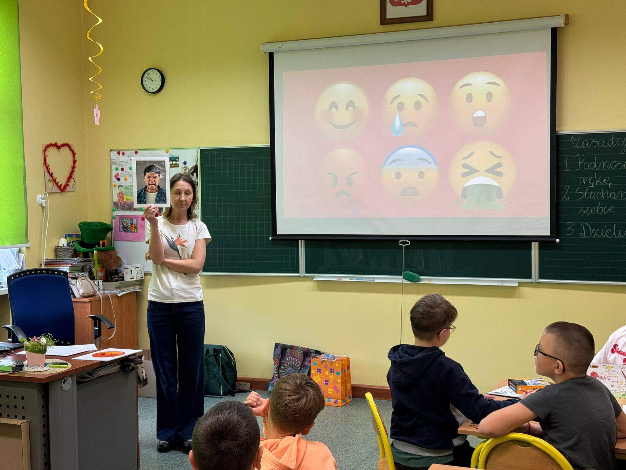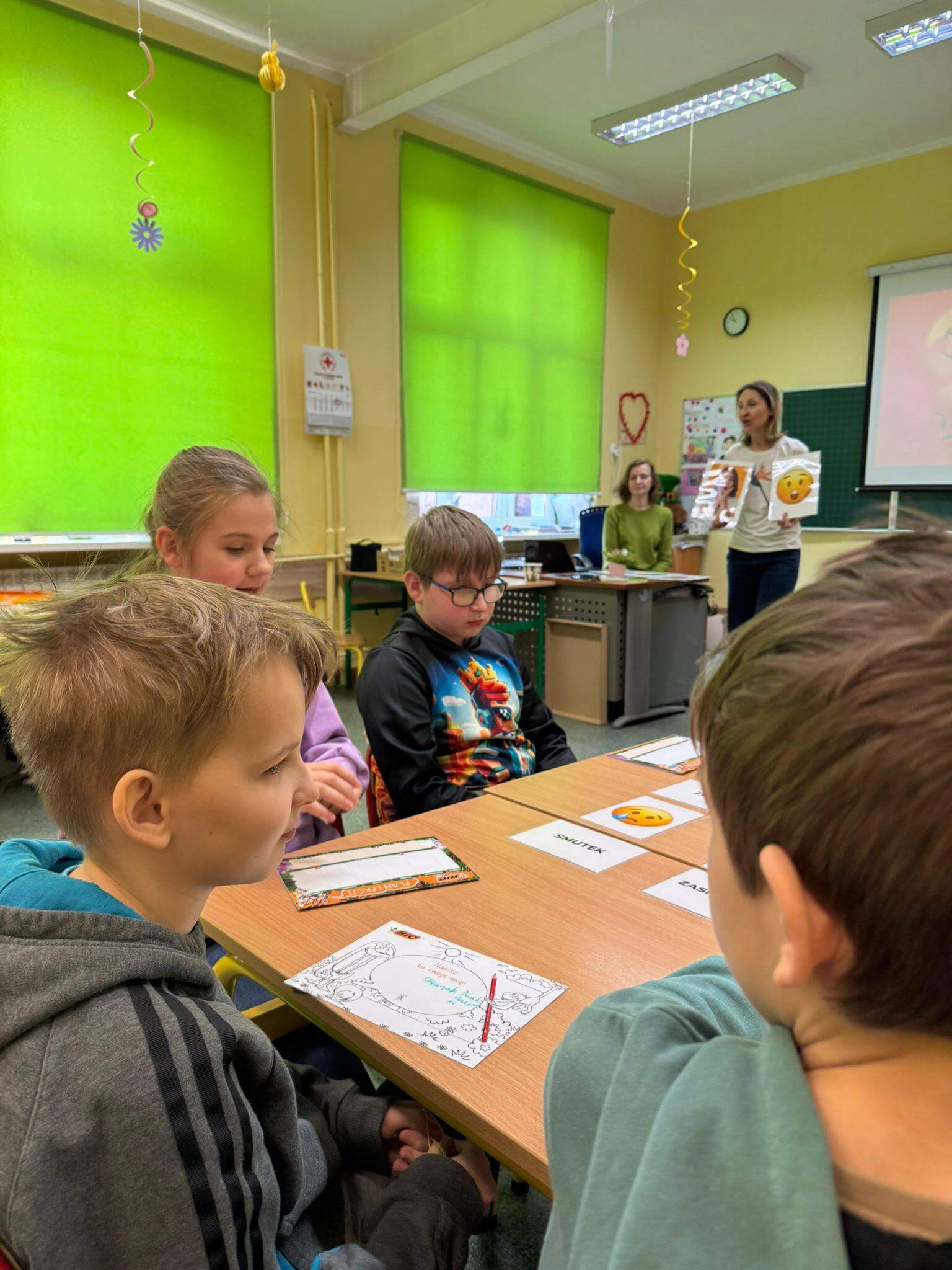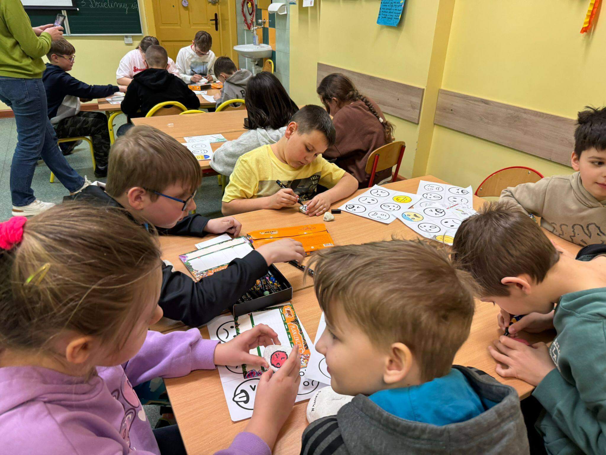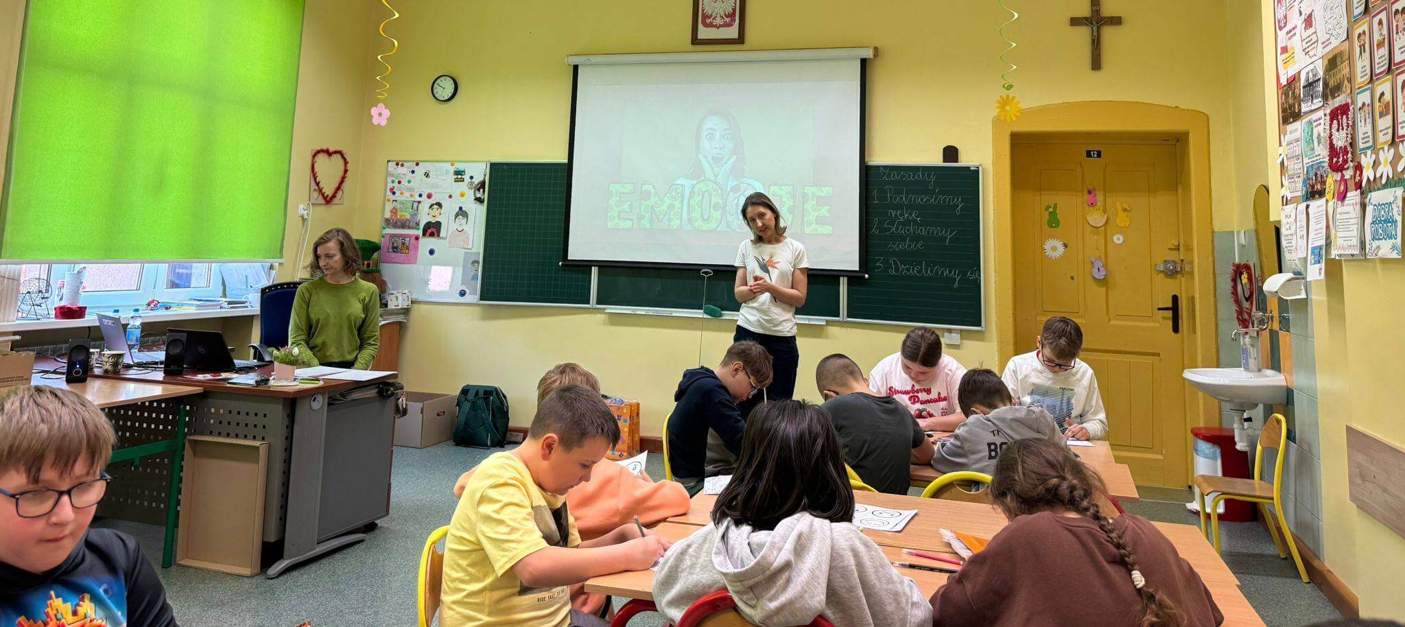 Głównym celem zajęć było rozwijanie kompetencji emocjonalno-społecznych uczniów, w tym umiejętności rozpoznawania, nazywania i wyrażania emocji, a także radzenia sobie z presją rówieśniczą i trudnymi sytuacjami społecznymi. Warsztaty wpisywały się w nurt edukacji społeczno-emocjonalnej (SEL), który odgrywa kluczową rolę w budowaniu dobrostanu psychicznego dzieci oraz ich gotowości do nauki i współpracy. Podczas warsztatów uczniowie pracowali metodami aktywizującymi – uczestniczyli w dyskusjach, ćwiczeniach grupowych oraz działaniach plastycznych i refleksyjnych. Kluczowym elementem było uświadomienie sobie, że emocje można porównać do kolorów – każda z nich ma swoje znaczenie i pełni ważną funkcję. Razem tworzą obraz naszego świata wewnętrznego.
