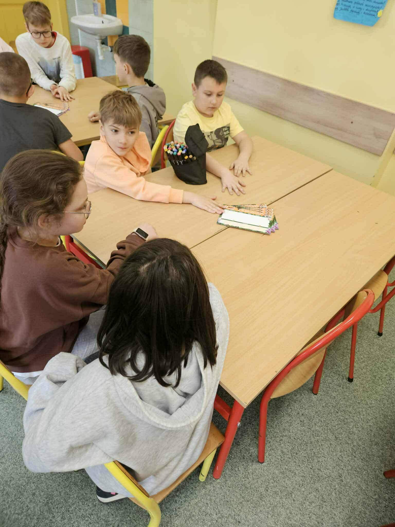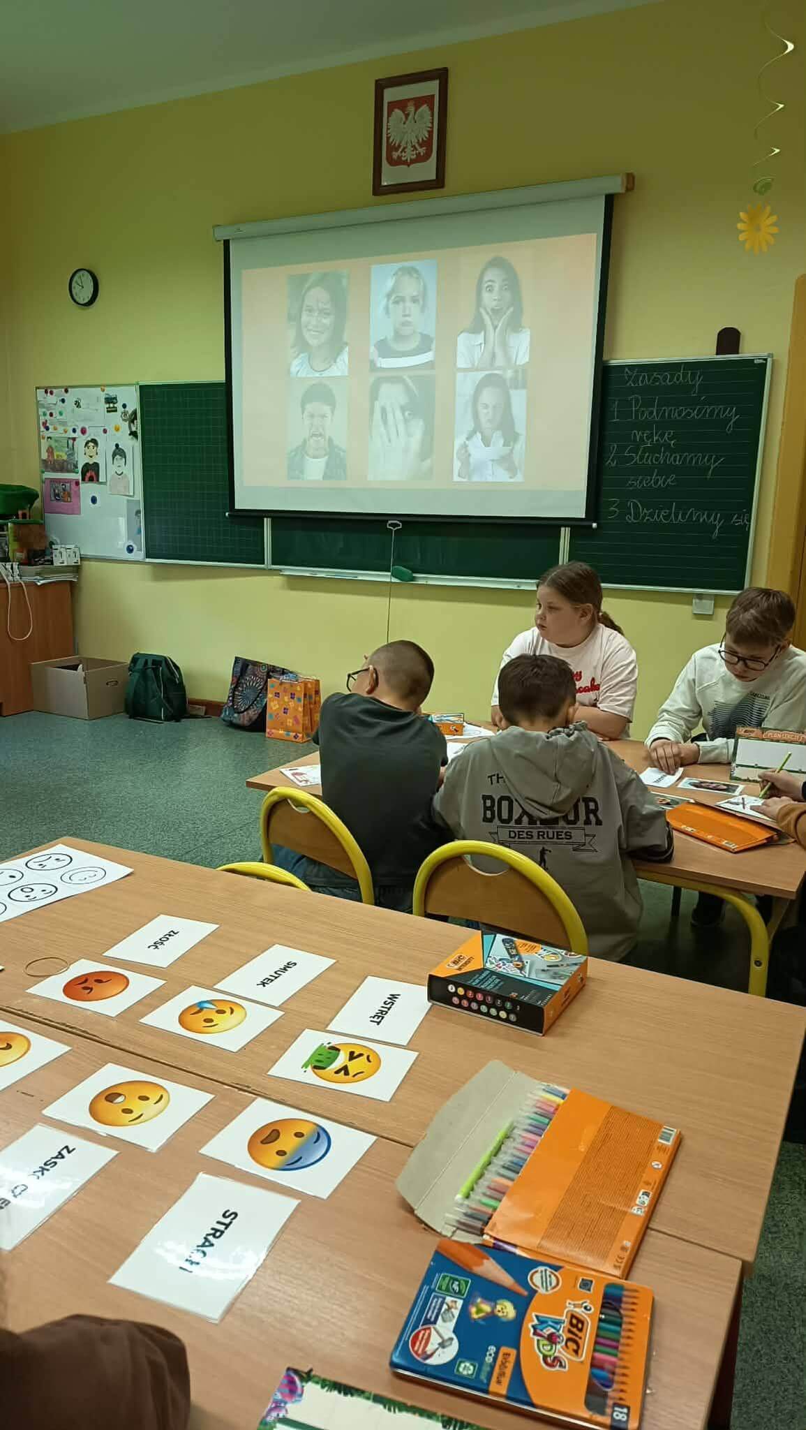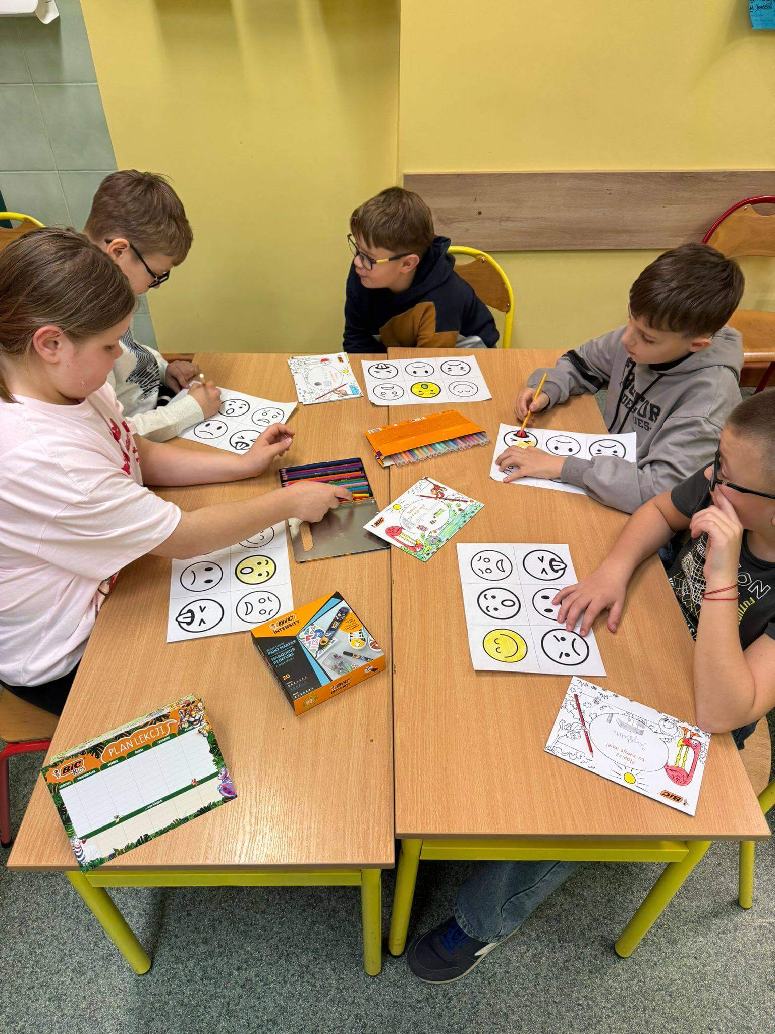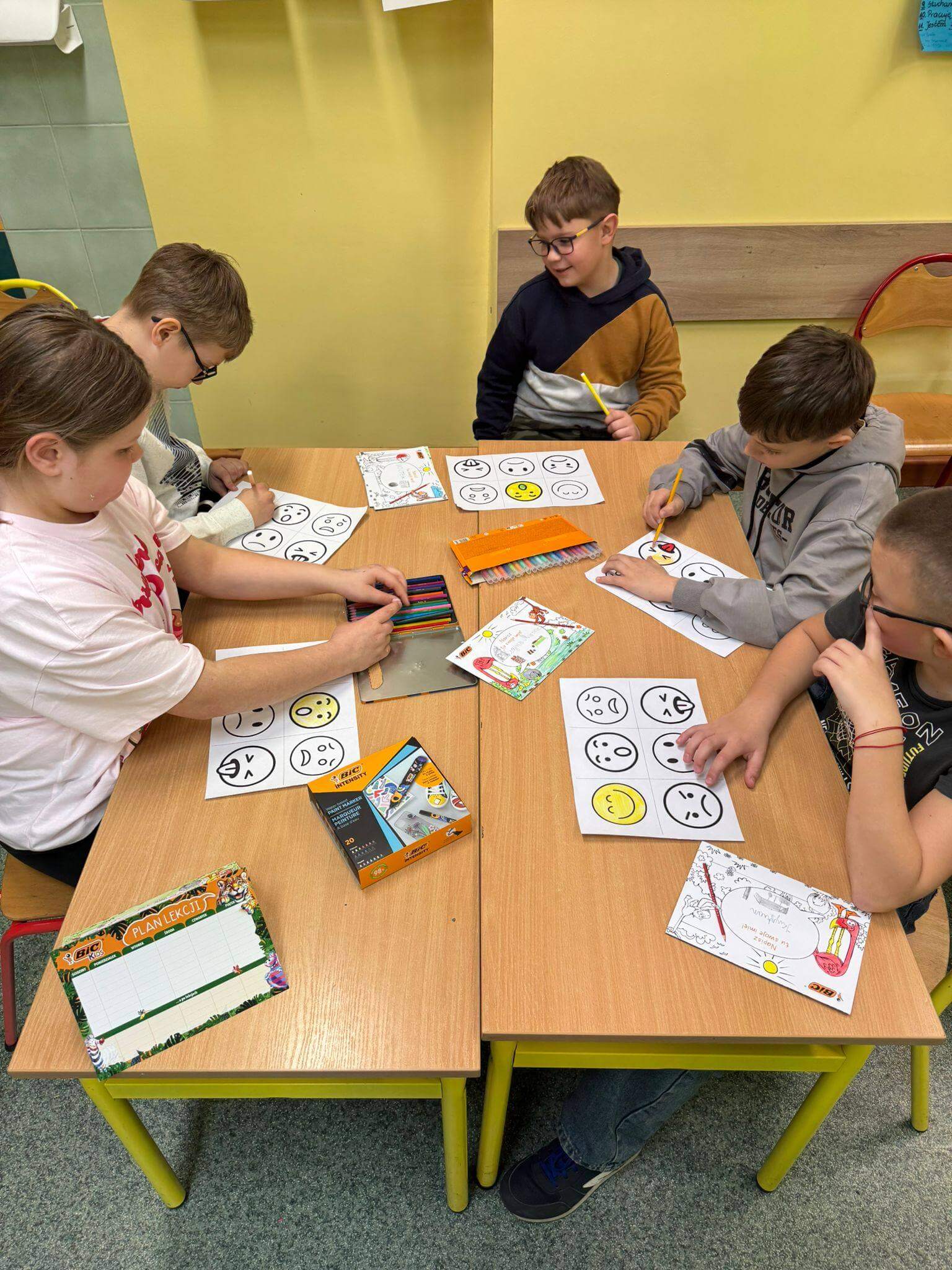 Uczniowie uczyli się także, jak konstruktywnie wyrażać emocje, jak reagować na trudne zachowania rówieśników oraz jak wspierać siebie nawzajem w codziennych sytuacjach szkolnych.