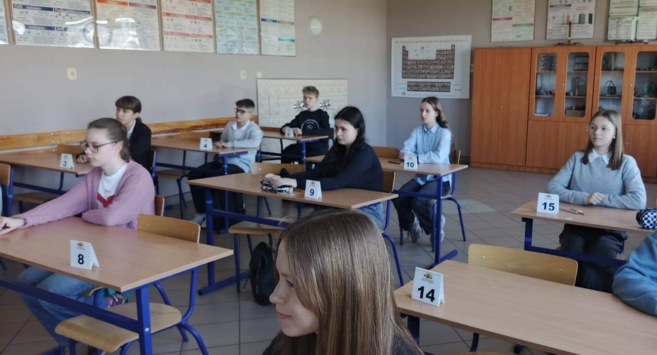 Po wcześniejszych eliminacjach szkolnych do etapu powiatowego zakwalifikowało się 27 uczniów z 14 szkół. Naszą szkołę reprezentowali Adam Wypuszcz (z klasy 6a) i Agata Łapka (z klasy 6b). Uczestnicy zmierzyli się najpierw z testem, a następnie z zadaniami otwartymi wymagającymi logicznego myślenia.