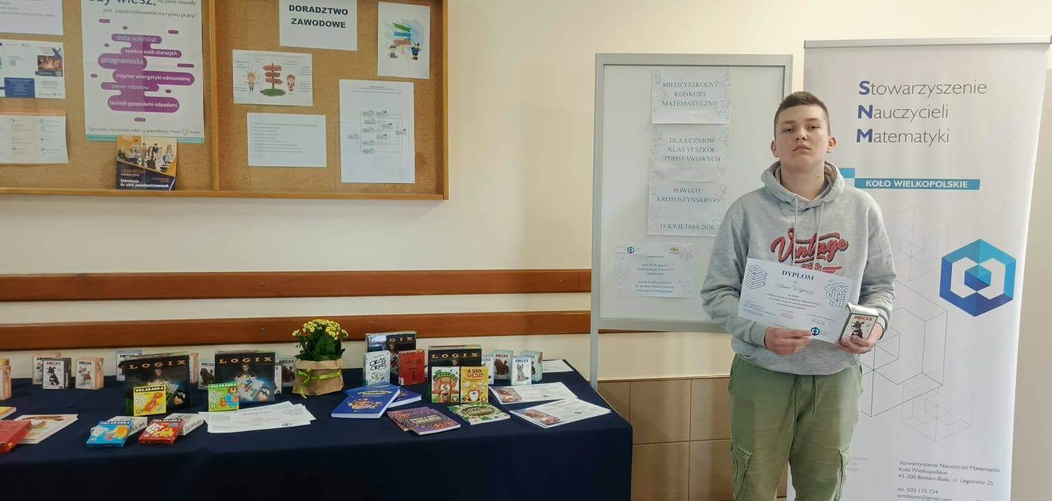 15 kwietnia 2026 r. odbył się etap powiatowy Międzyszkolnego Konkursu Matematycznego dla uczniów klas VI szkół podstawowych powiatu krotoszyńskiego, organizowany przez Koło Wielkopolskie Stowarzyszenia Nauczycieli Matematyki oraz Szkołę Podstawową nr 3 im. Kornela Makuszyńskiego w Koźminie Wielkopolskim.