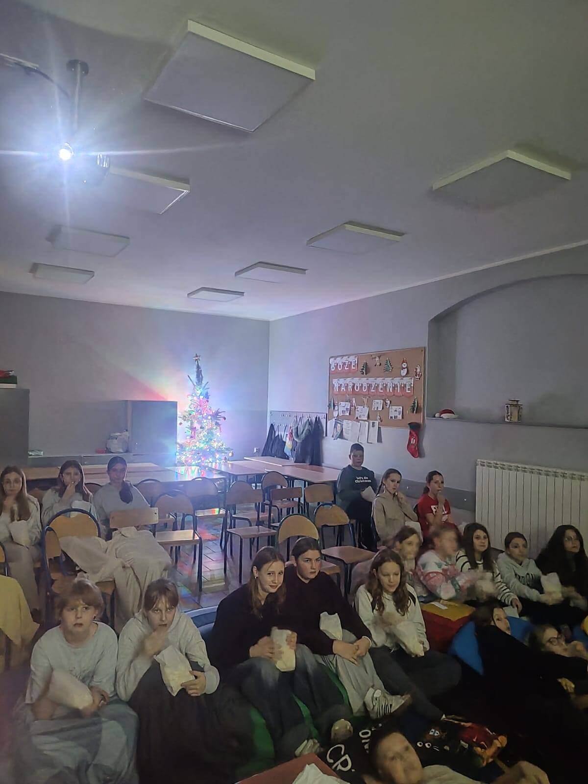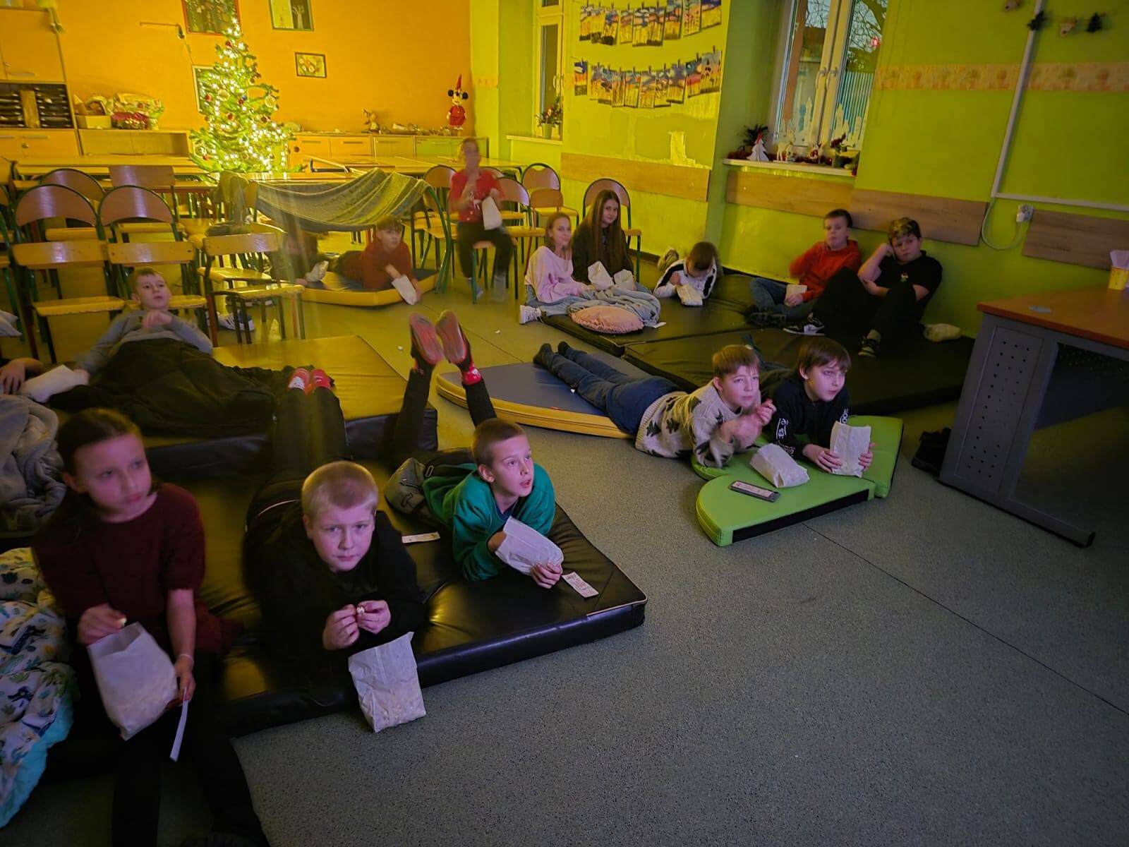 W naszej szkole zrobiło się naprawdę świątecznie! Uczniowie klas 5 spędzili wyjątkowy mikołajkowy wieczór filmowy, podczas którego każdy mógł wybrać coś dla siebie. Na ekranach królowały dwa tytuły: „Tamte święta” oraz „Coraline” – emocji i wrażeń było co niemiara!