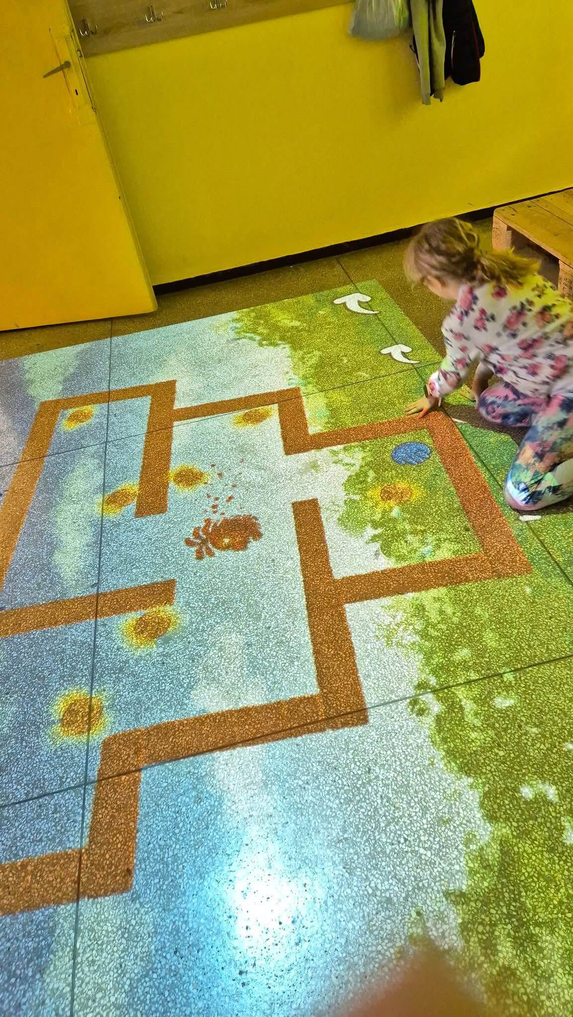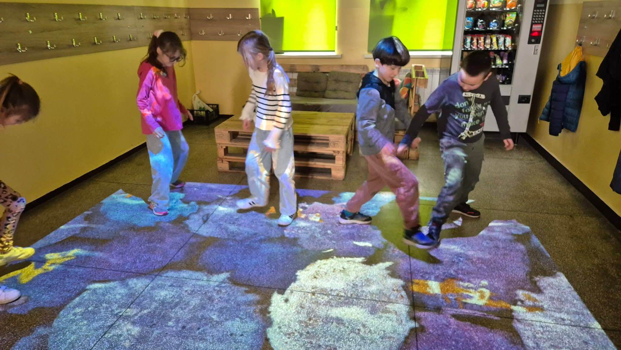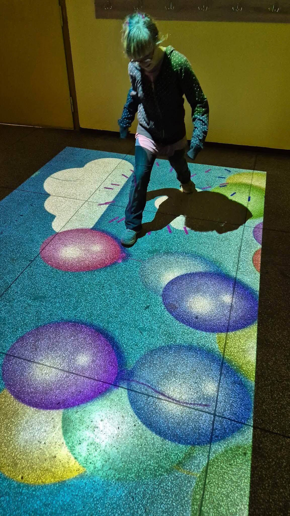 Magiczny dywan to obraz, który wyświetlany jest przy pomocy rzutnika na podłodze, daje on efekt wirtualnego dywanu, na którym dzieci mogą się bawić.