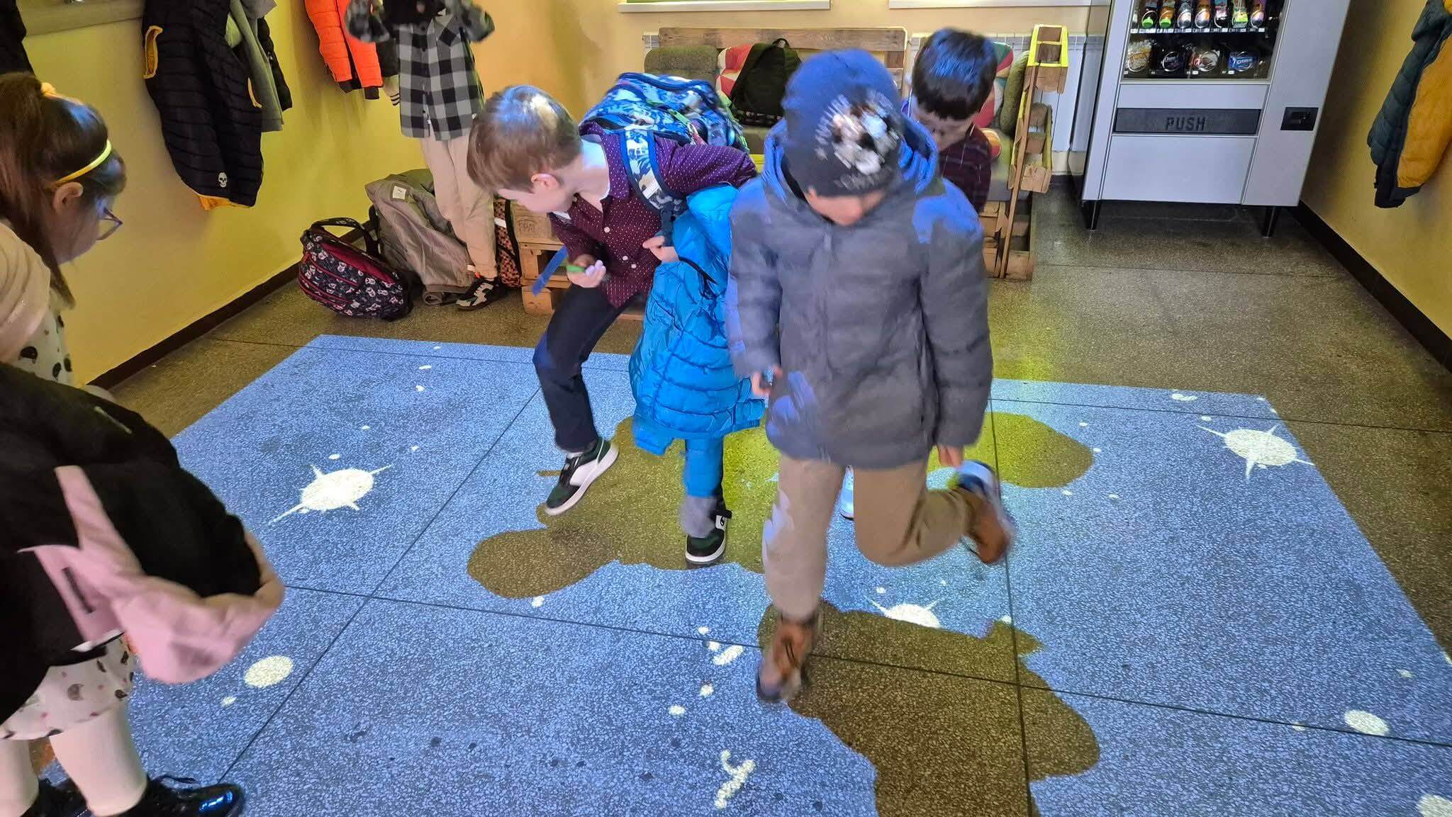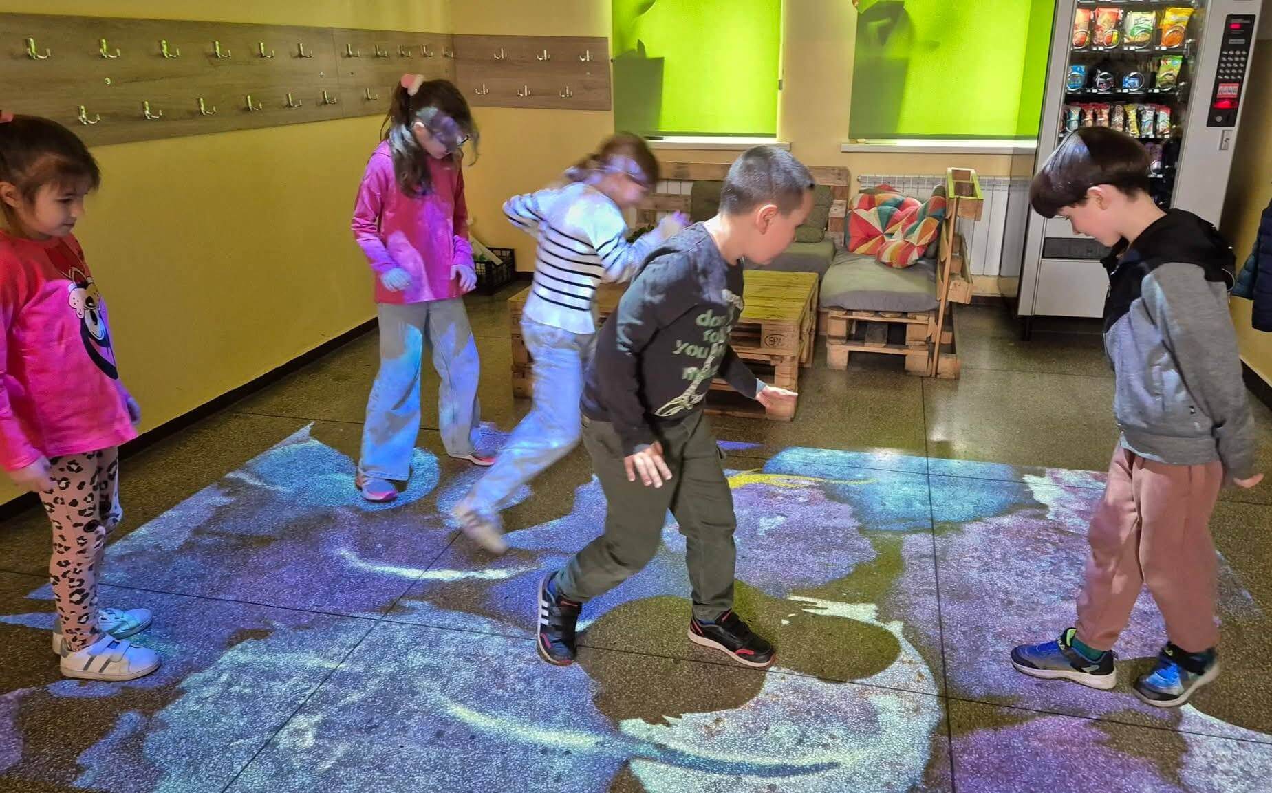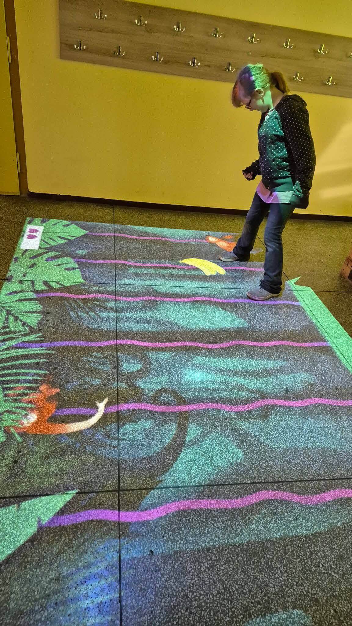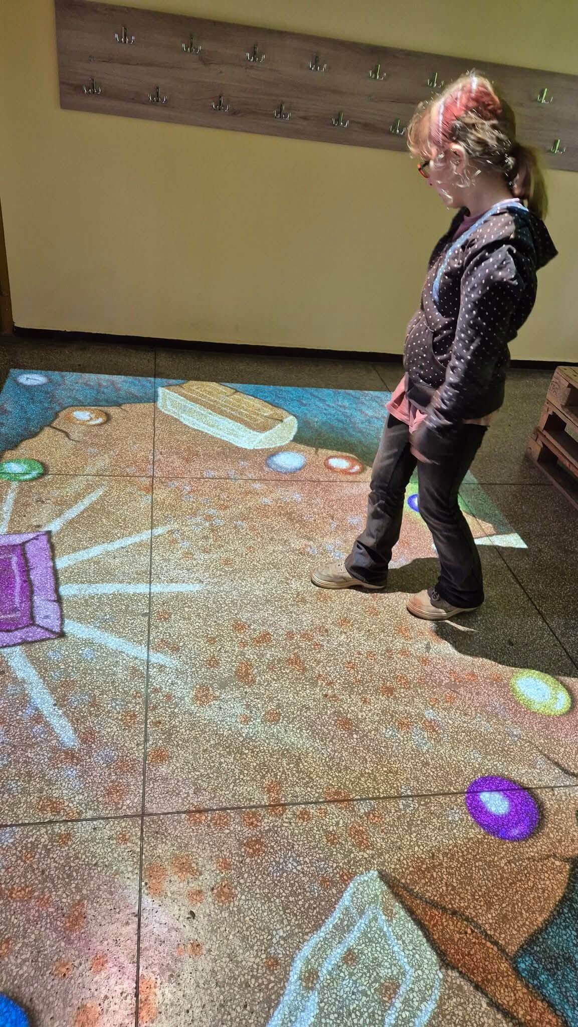 Magiczny dywan to obraz, który wyświetlany jest przy pomocy rzutnika na podłodze, daje on efekt wirtualnego dywanu, na którym dzieci mogą się bawić.