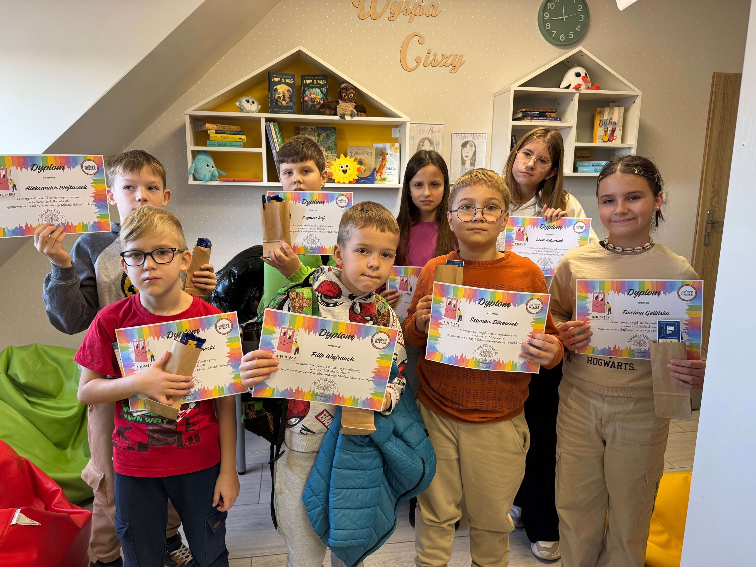 Komisja w składzie: p. Anna Kaj, p. Izabela Kaźmierczak i p. Paulina Janicka, po wnikliwej ocenie estetyki, pomysłowości i zgodności z tematyką literacką, wyłoniła laureatów: