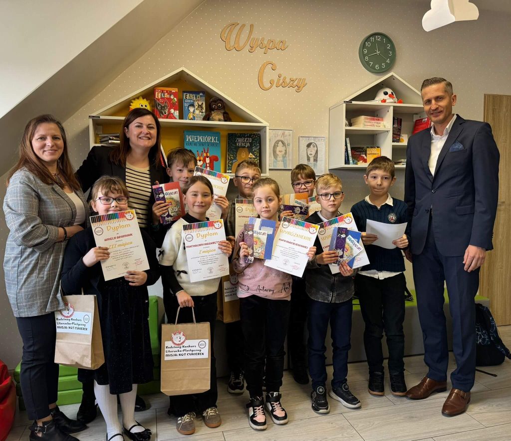 Z radością ogłaszamy wyniki Rodzinnego Konkursu Literacko-Plastycznego pt. „Misja: Kot Cukierek”. Bardzo dziękujemy wszystkim uczestnikom za udział, kreatywność i ogromne zaangażowanie. Szczególne wyrazy uznania kierujemy do rodziców, dziadków oraz innych członków rodzin, którzy wspólnie włączyli się w tę czytelniczą przygodę. To właśnie dzięki takiej współpracy powstało wiele wspaniałych, pomysłowych prac.