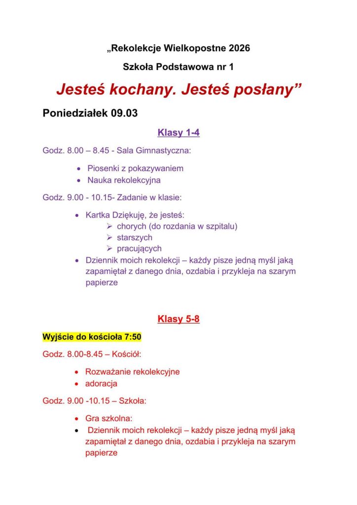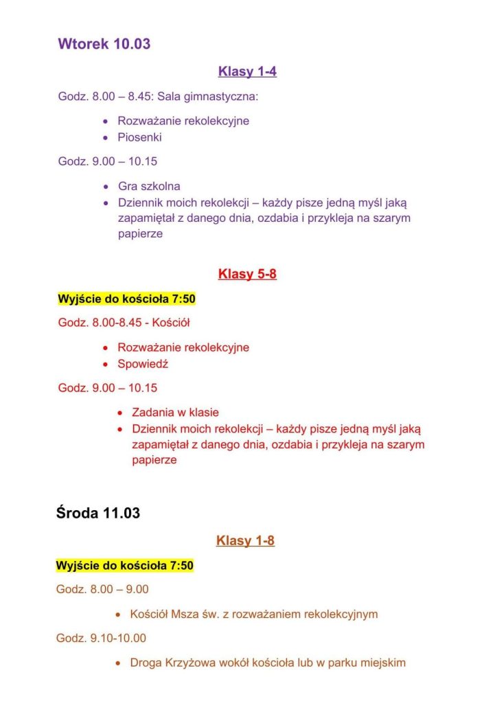Poniedziałek – pierwszy dzień rekolekcji – starsi uczniowie z klas: 5, 6, 7 i 8 spędzili na grze ulicznej pt. „Świadkowie” oraz wysłuchali konferencji ojca misjonarza klasztoru Franciszkanów, która odbyła się w Koźmińskiej Farze.