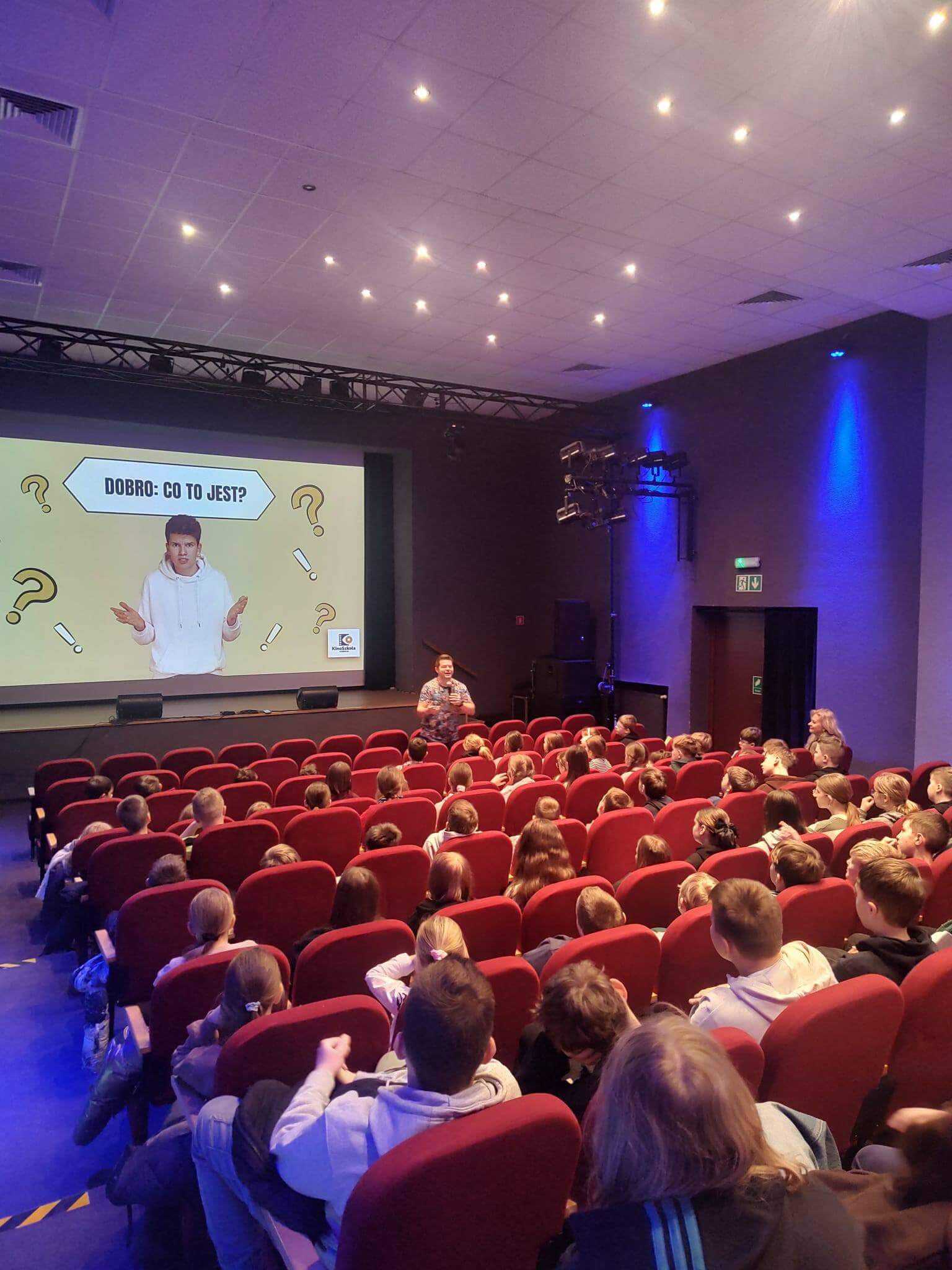 Uczniowie klas 4–6 wzięli udział w projekcie KinoSzkoła, którego tematem przewodnim był problem hejtu – nie tylko w internecie, ale również w codziennych relacjach rówieśniczych. Zajęcia rozpoczęły się od dyskusji na temat manipulacji w sieci, hejtowania oraz wykluczania z grupy. Uczniowie bardzo aktywnie uczestniczyli w rozmowie – chętnie zabierali głos, dzielili się swoimi spostrzeżeniami i osobistymi doświadczeniami. Następnie obejrzeli film poruszający omawiane zagadnienia, który stał się punktem wyjścia do dalszej refleksji nad odpowiedzialnością za słowa i zachowania wobec innych. Udział w projekcie był dla uczniów wartościową lekcją empatii i budowania pozytywnych relacji.